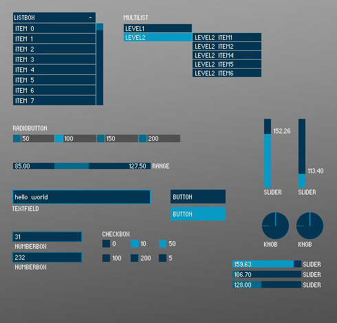 Voir l’usage des contrôleurs dans les exemples : Menu Fichier > Exemples… > Contributed Libraries > ControlP5.