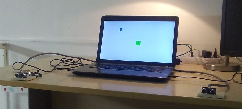 - Moving by distance *** : traduire visuellement la position de deux personnes avec deux capteurs de distance, et processing pour l’affichage écran.