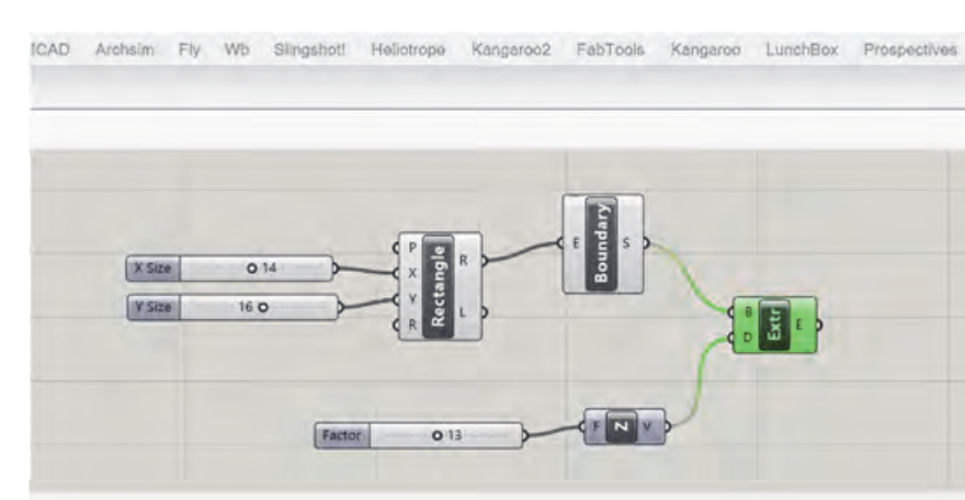 Environnement Grasshopper : création de l’algorithme paramétrique graphique. C’est dans cet environnement, appelé « canevas », que vous créez le modèle paramétrique.