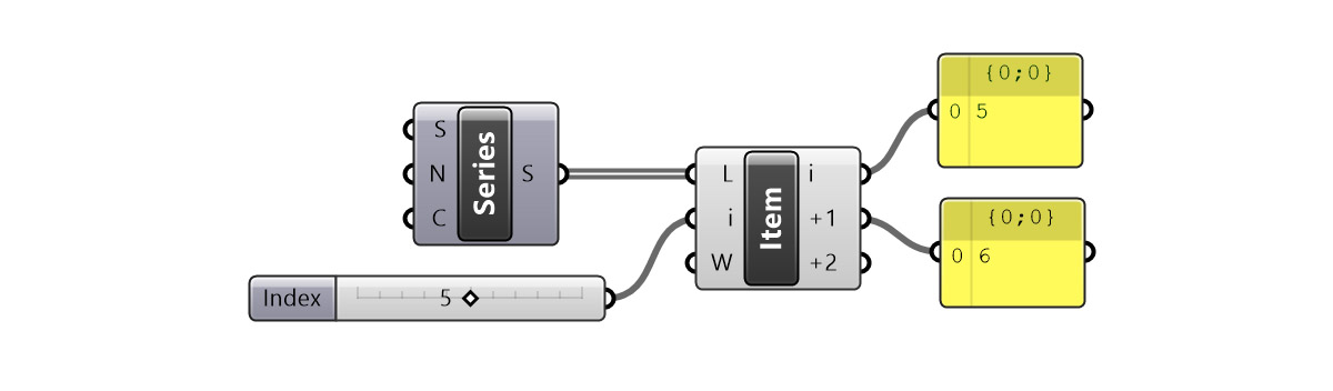 être défini via un composant Number Slider générant des entiers connectés à la même entrée ou un composant Panel dans lequel est saisi la valeur correspondant à l’indice.