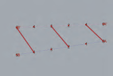 EX4: Relier par alternance les deux groupes de points AB et A’B’ (un point sur deux) avec des segments de droites obliques reliant les points 0, 2 et 4 du groupe AB et les points 1, 3 et 5 du groupe A’B’..