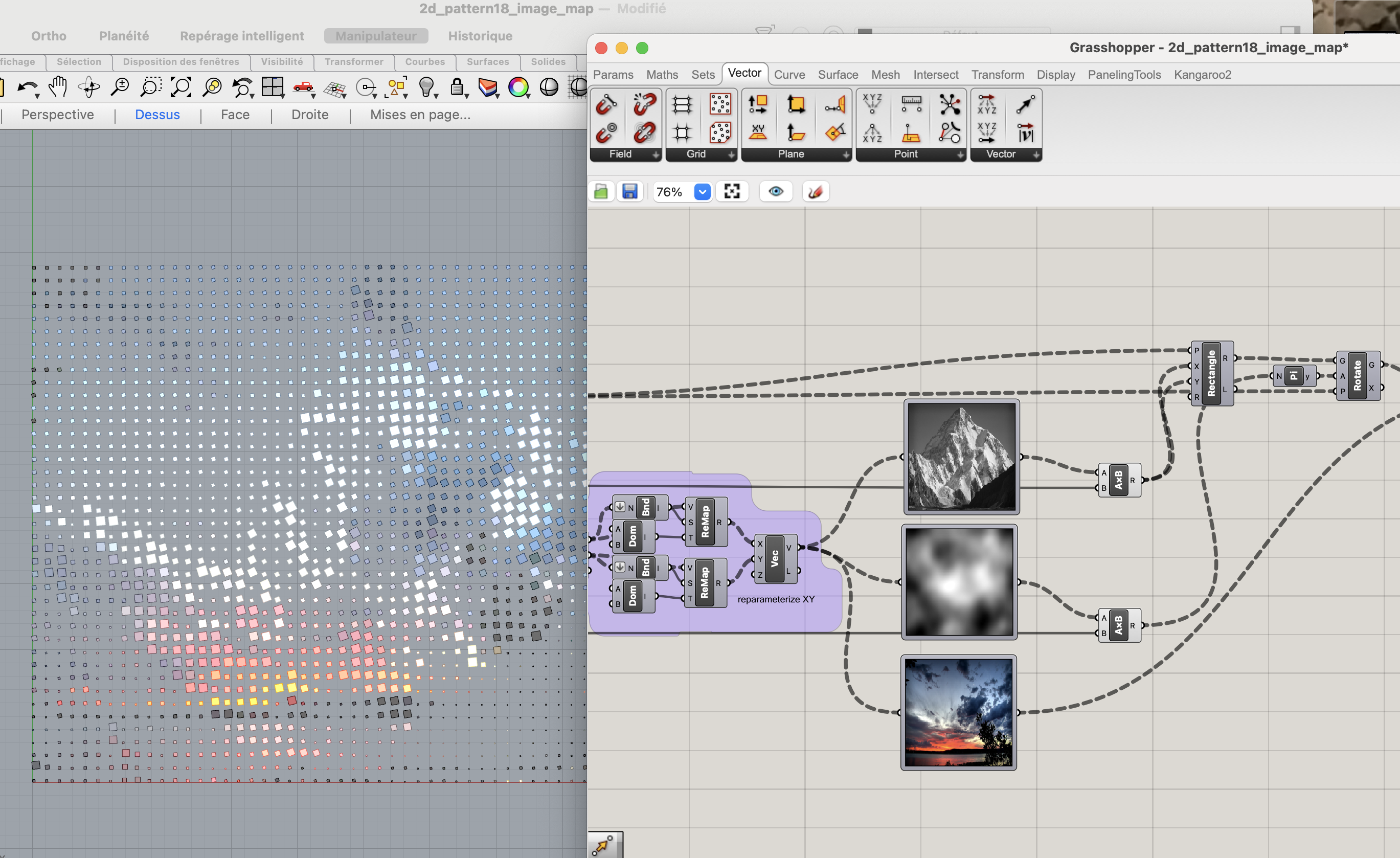 L’objectif de cette définition est d’explorer les fonctions de traitement d’image dans grasshopper grâce à l’élément IMAGE SAMPLER.