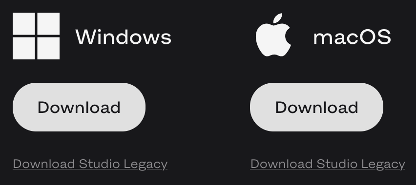 Depuis 2023, il faut utiliser la version Legacy (cliquer sur le petit texte gris en bas et pas sur le gros bouton Download).