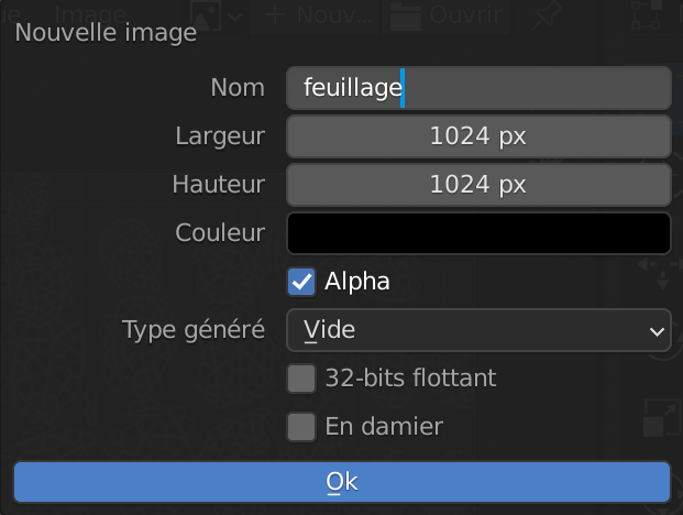 Nommer l’image « feuillage » en gardant les paramètres par défaut ci-dessous. Valider.