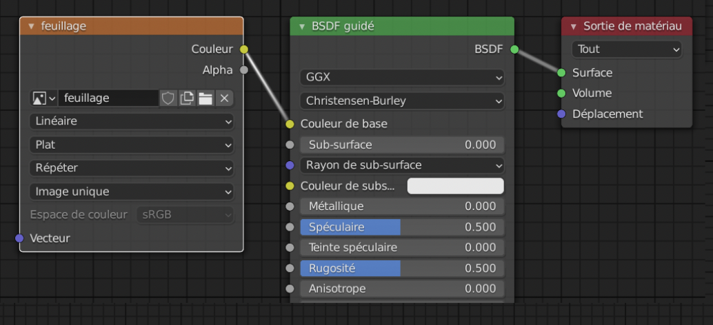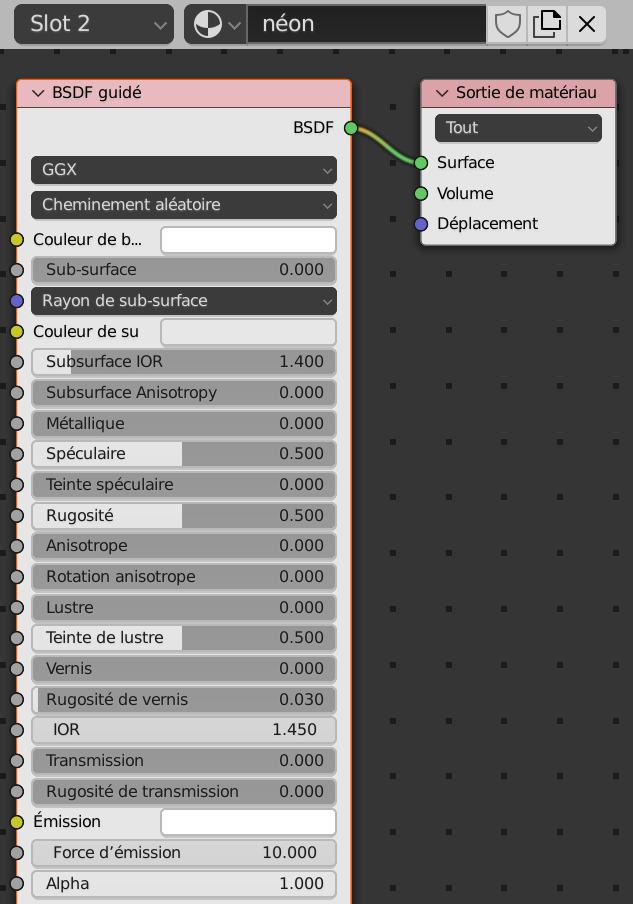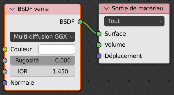 Recréer le lien en cliquant sur le point BSDF et en glissant jusqu’au point Surface.