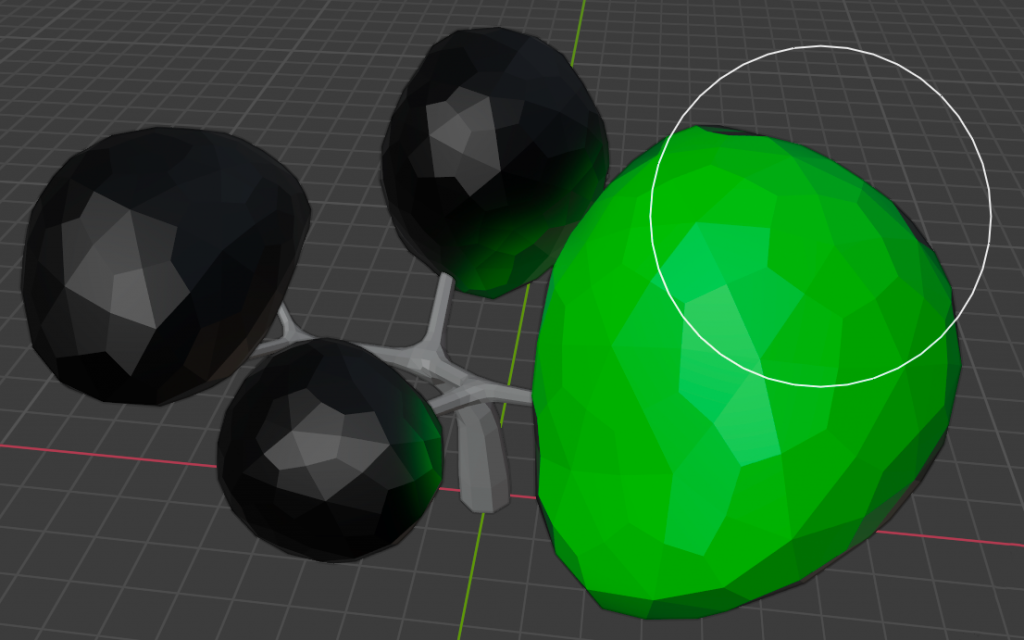 Pour les feuilles, ajouter des Sphères dont les Mesh seront déformés. Les feuilles sont regroupées dans un unique Objet.