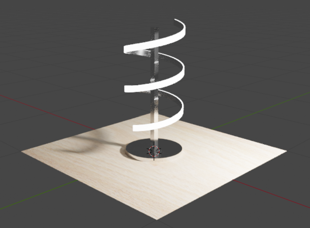 Ce modèle contient 3 matières, de l’acier chromé, du bois et la partie extérieure de la spirale, émettrice de lumière, disons néon. Il va donc falloir créer 3 Shaders.