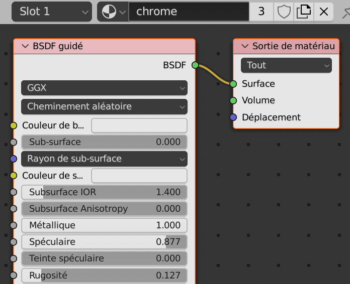 – Le Node Sader BSDF Guidé où l’on retrouve les réglages précédents,