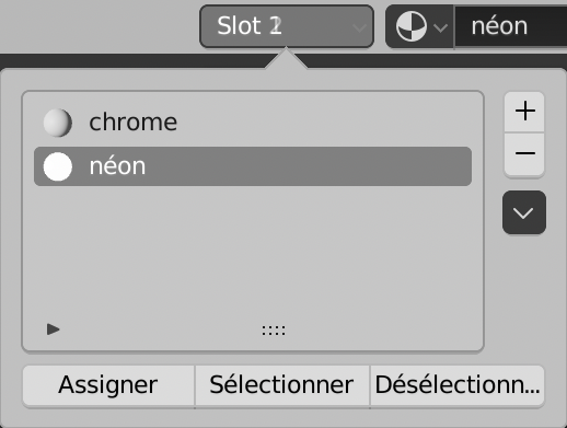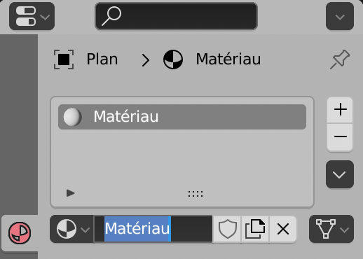 Le nom Matériau apparait dans une case sur ce bouton, ainsi que dans la liste au dessus.