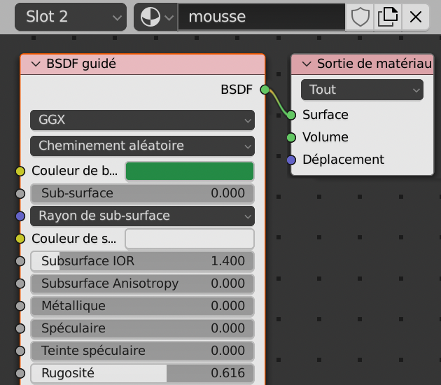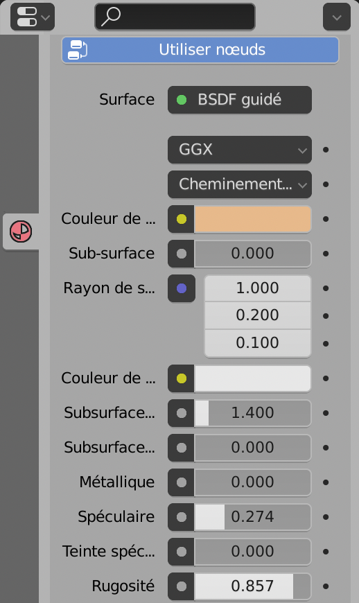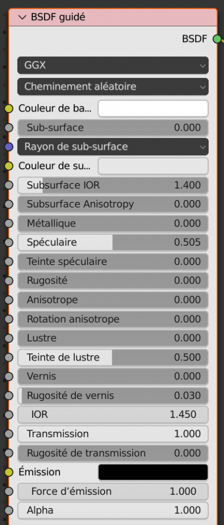 Pour Cycles, le réglage est celui du Shader BSDF Guidé.