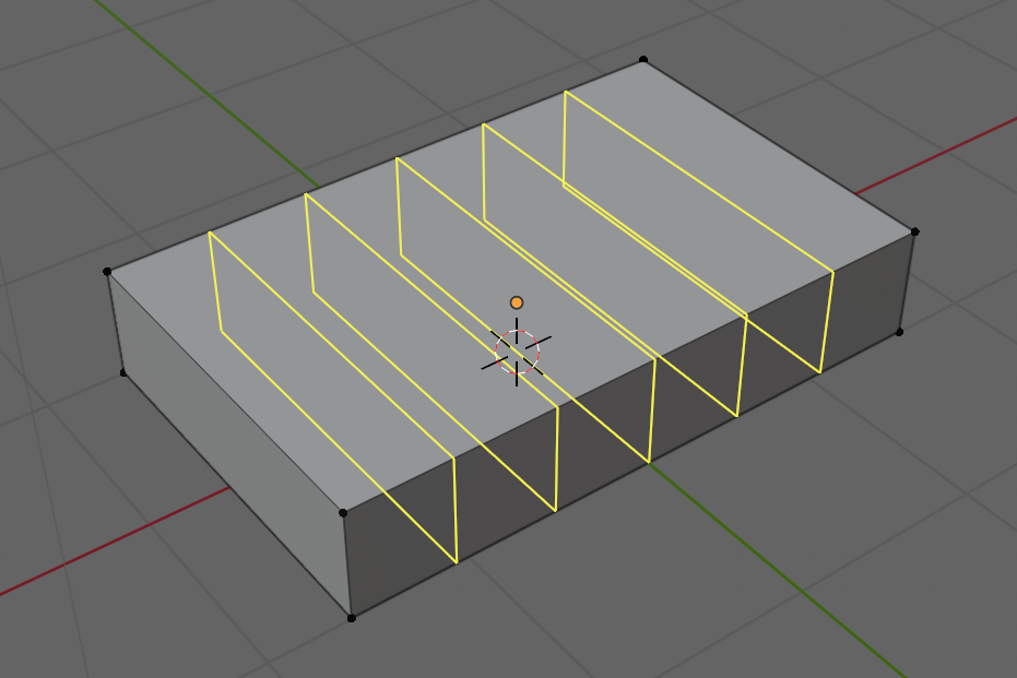Passer en Mode Edit (TAB). Rajouter 5 Loop Cut (Ctrl R + Roulette)(2).