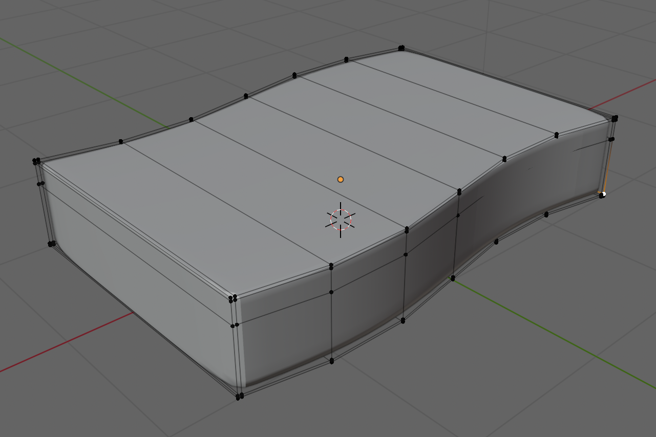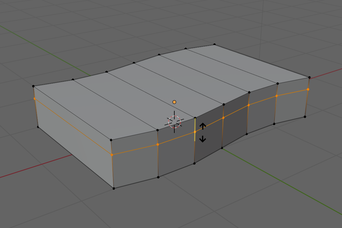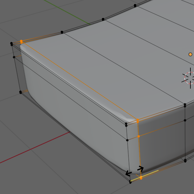 En Vue de dessus, sélectionner chaque Loop Cut (Alt Clic) et la déplacer comme ci-dessous (3).