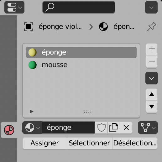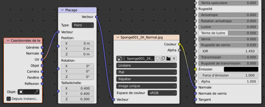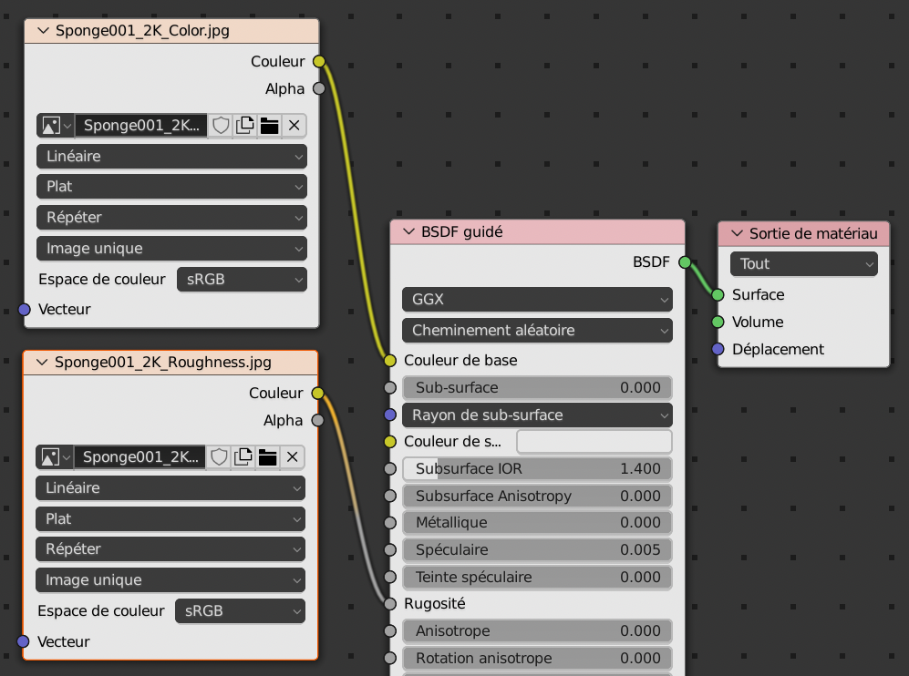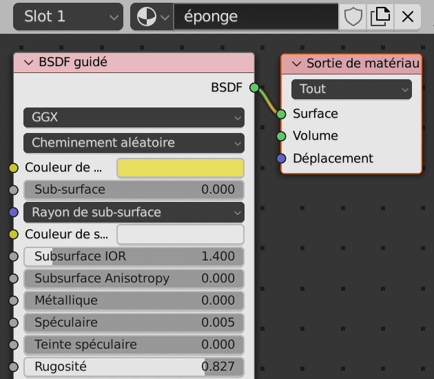 Pour la matière éponge, faire de même en connectant :