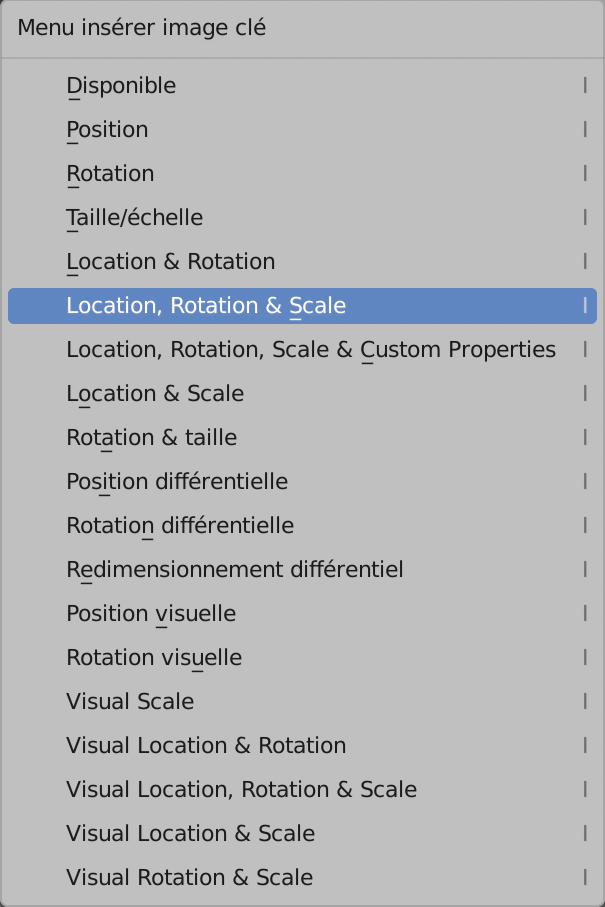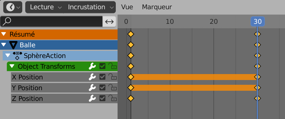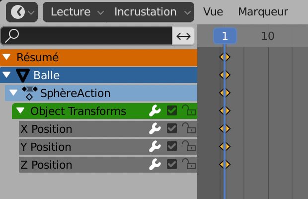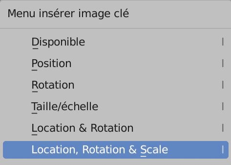 Enregistrer ces valeurs dans une nouvelle image clé (I > LocRotScale).