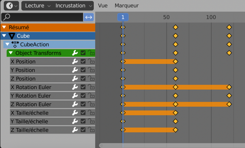 Pour effacer une image clé, la sélectionner et taper (X > Supprimer Image Clé).