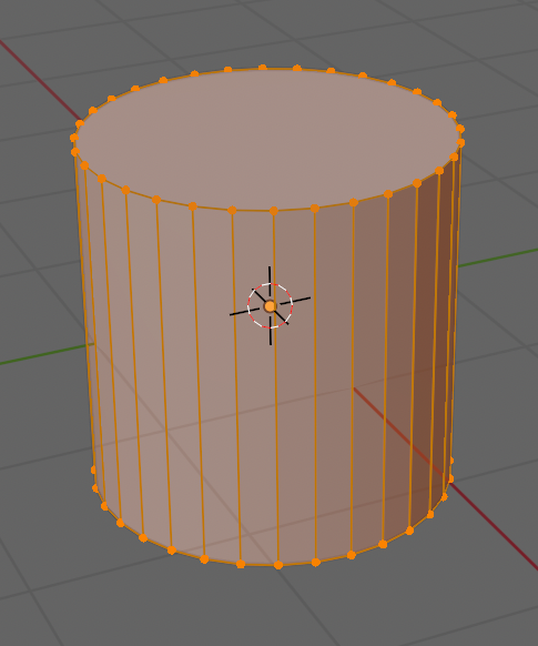 Il faut commencer par modéliser un récipient. Pour ce faire, ajouter un Cylindre (Shift A) dont la résolution est réglée par défaut sur 32 dans le panneau Last Action. Pour générer moins de polygones, il est possible de la ramener à 16.