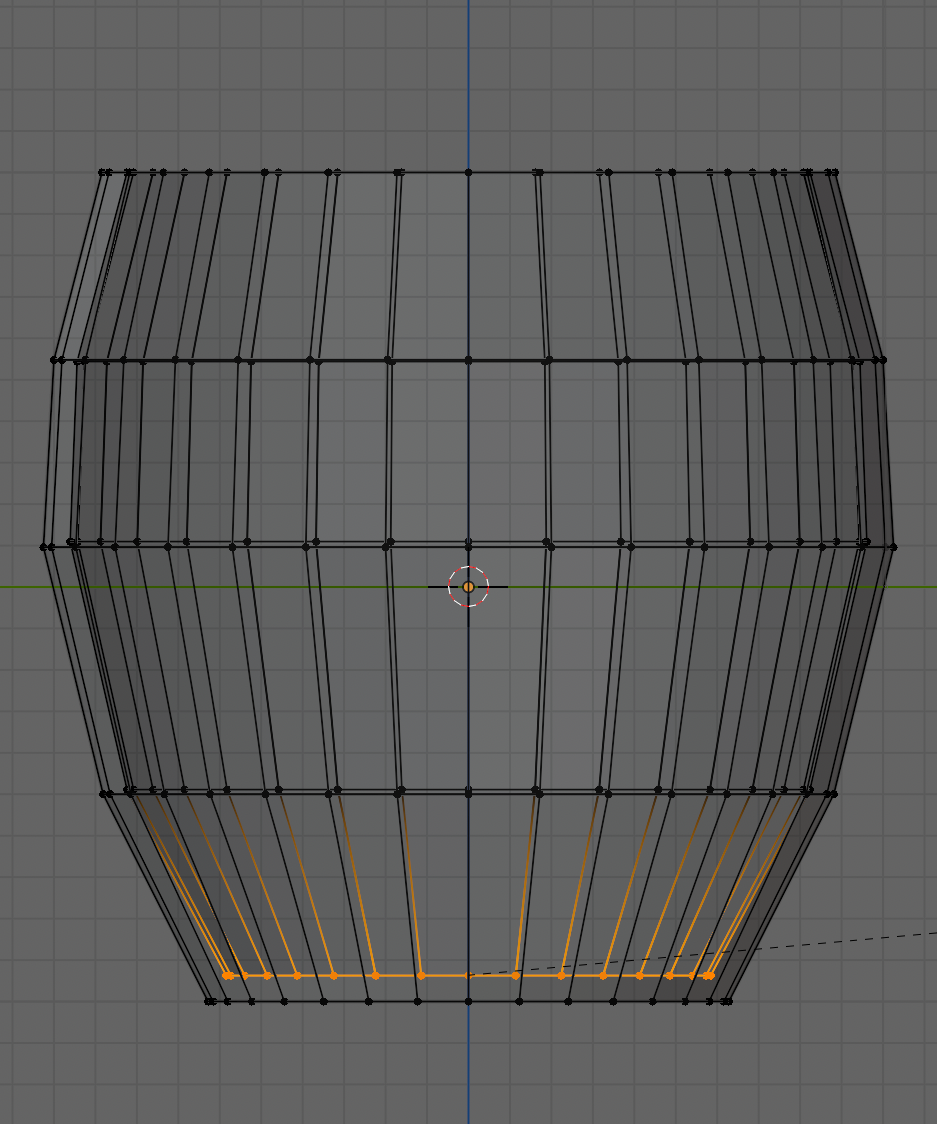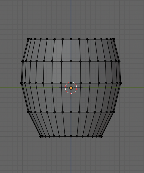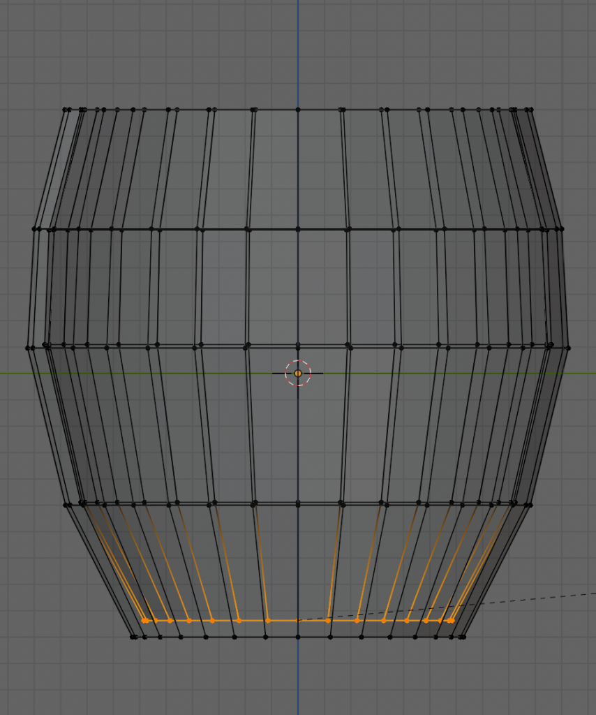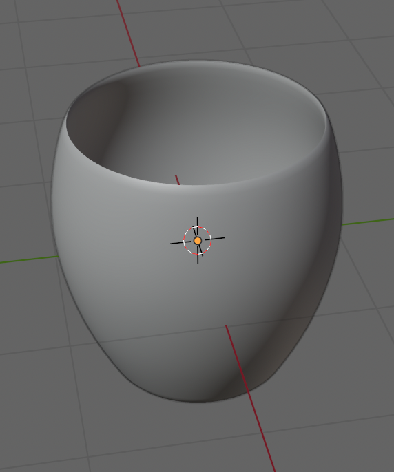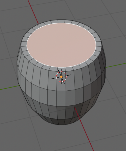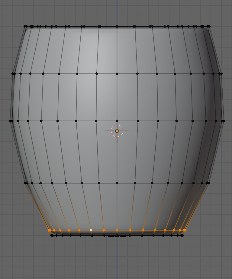 La forme n’est pas parfaite, notamment en bas où une face plate est nécessaire. En Mode Edit, rajouter un Loop Cut de renfort en bas et le rapprocher du bas du récipient pour raidir l’arête inférieure tout en conservant un léger arrondi.