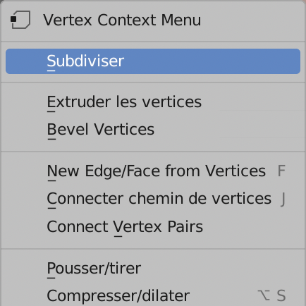 Subdiviser le Cercle (Clic Droit > Subdiviser). Cela donne 8 points. Il est possible d’augmenter les subdivisions, si besoin, par le panneau Last Action en bas à gauche de la Vue 3D avant de valider.