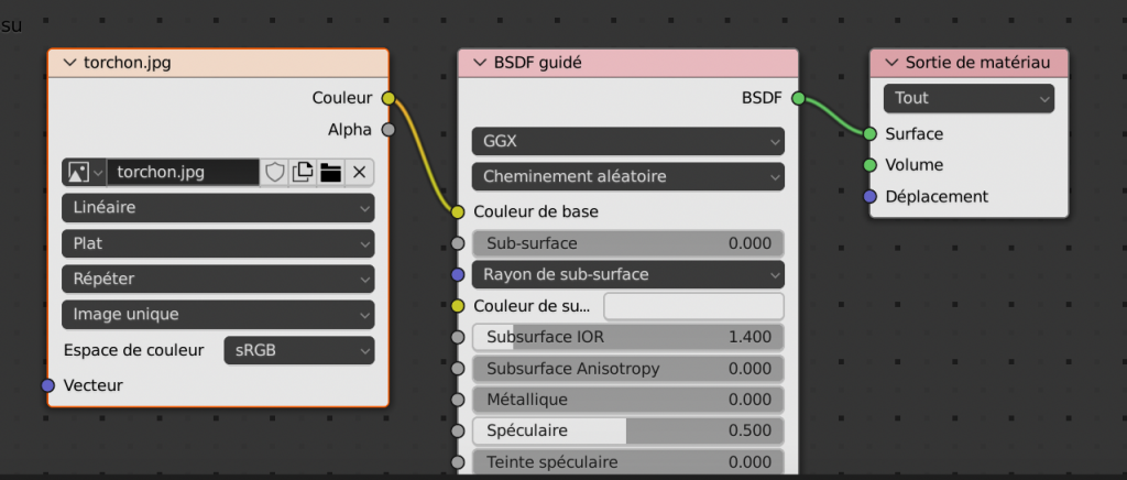 Pour le tissu, ajouter une texture avec l’image choisie (ici « torchon »).