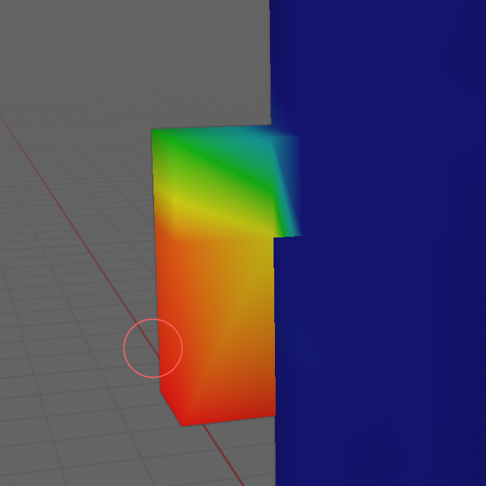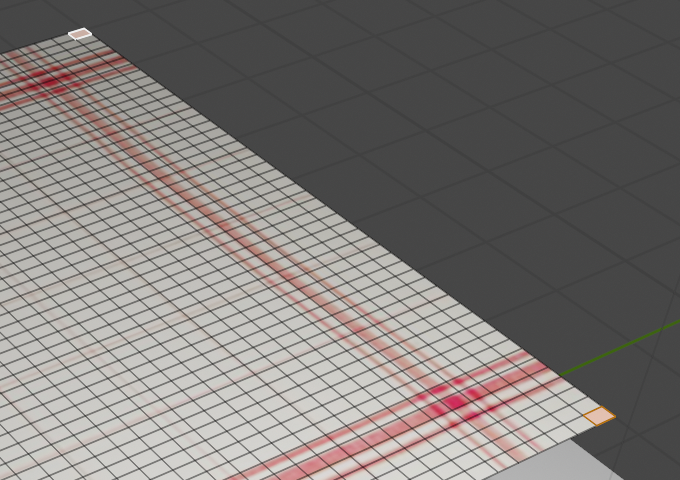 Cela correspond sur le maillage aux points sélectionnés ci-contre et qui doivent être peints en bleu pour corriger le défaut observé.