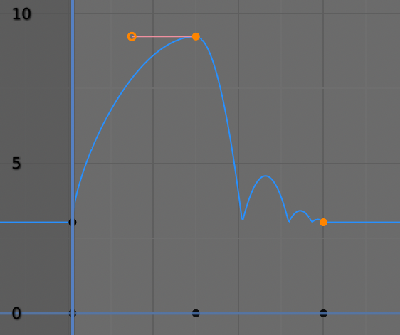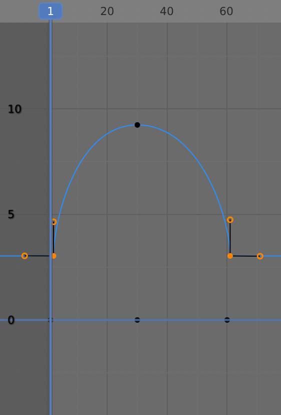 Ce mouvement n’est pas naturel. Elle devrait monter rapidement, ralentir en haut puis redescendre brutalement vers le sol, où elle doit rebondir. La courbe doit ressembler à une parabole. Il faut donc briser les tangentes des deux clés basses.
