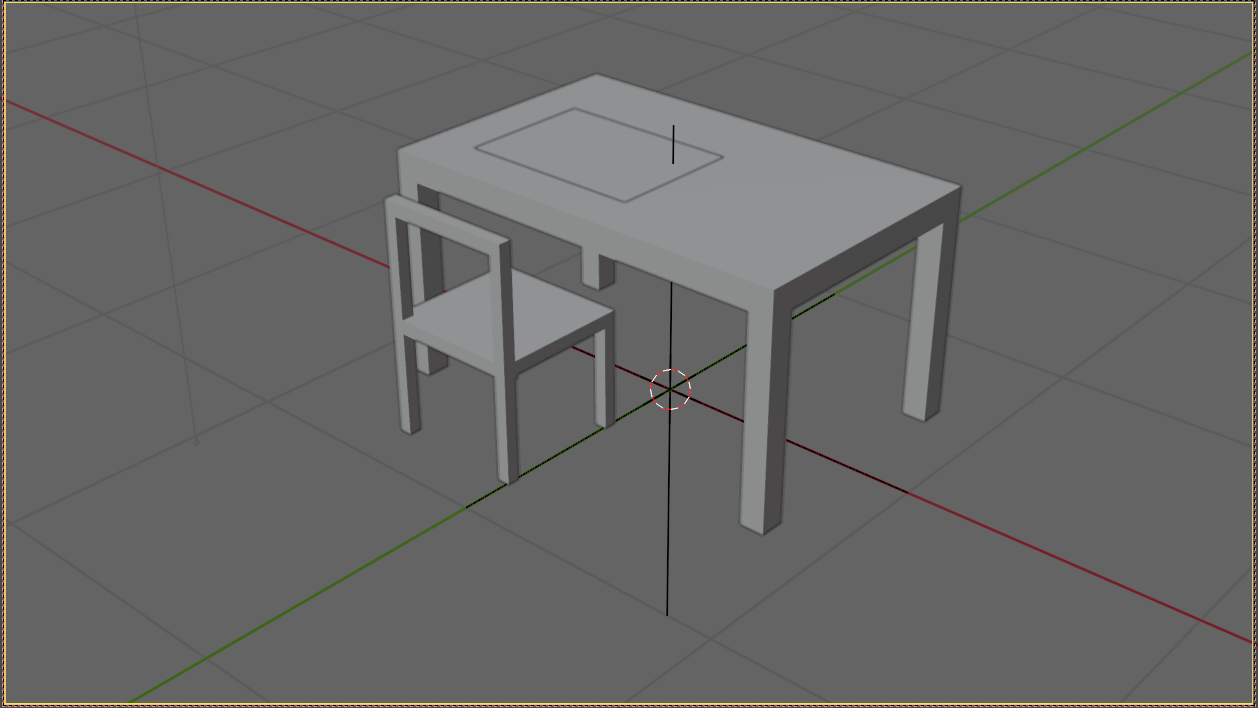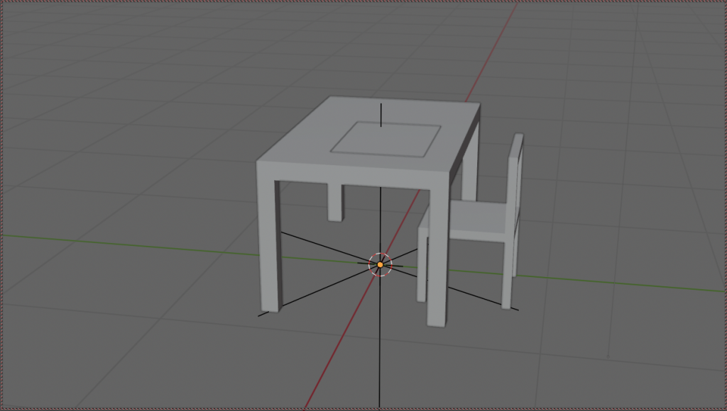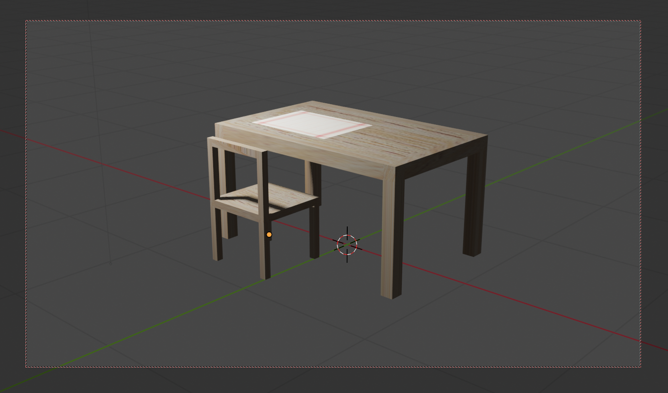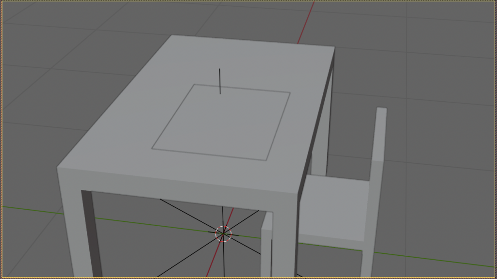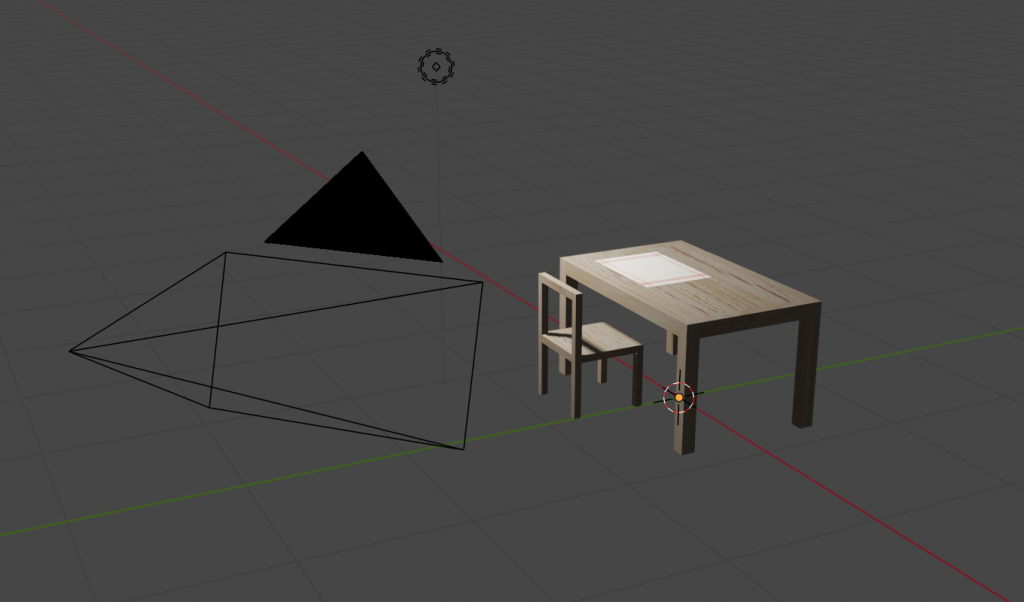 Dans cette Scène, l’animation consiste à faire tourner la caméra autour de la table. Dans l’écran ci-dessous, la caméra est visible au premier plan.