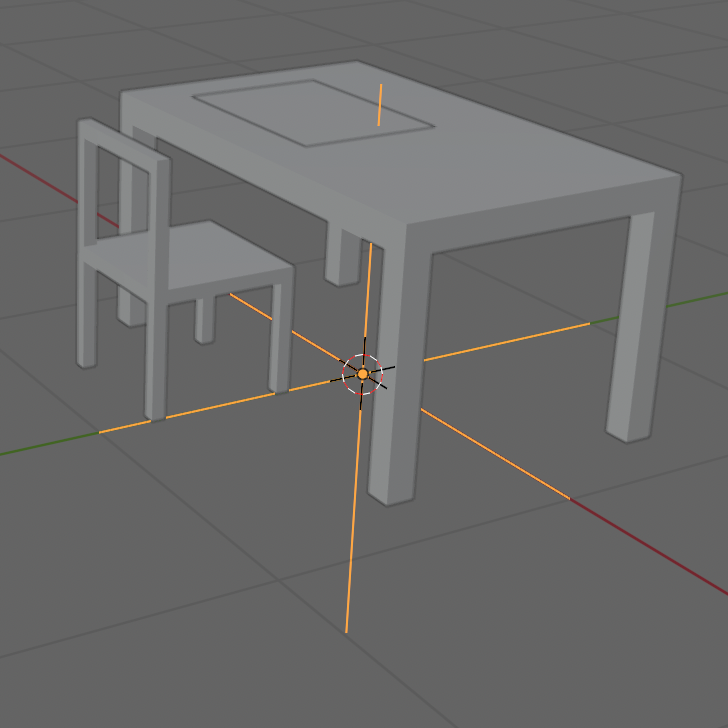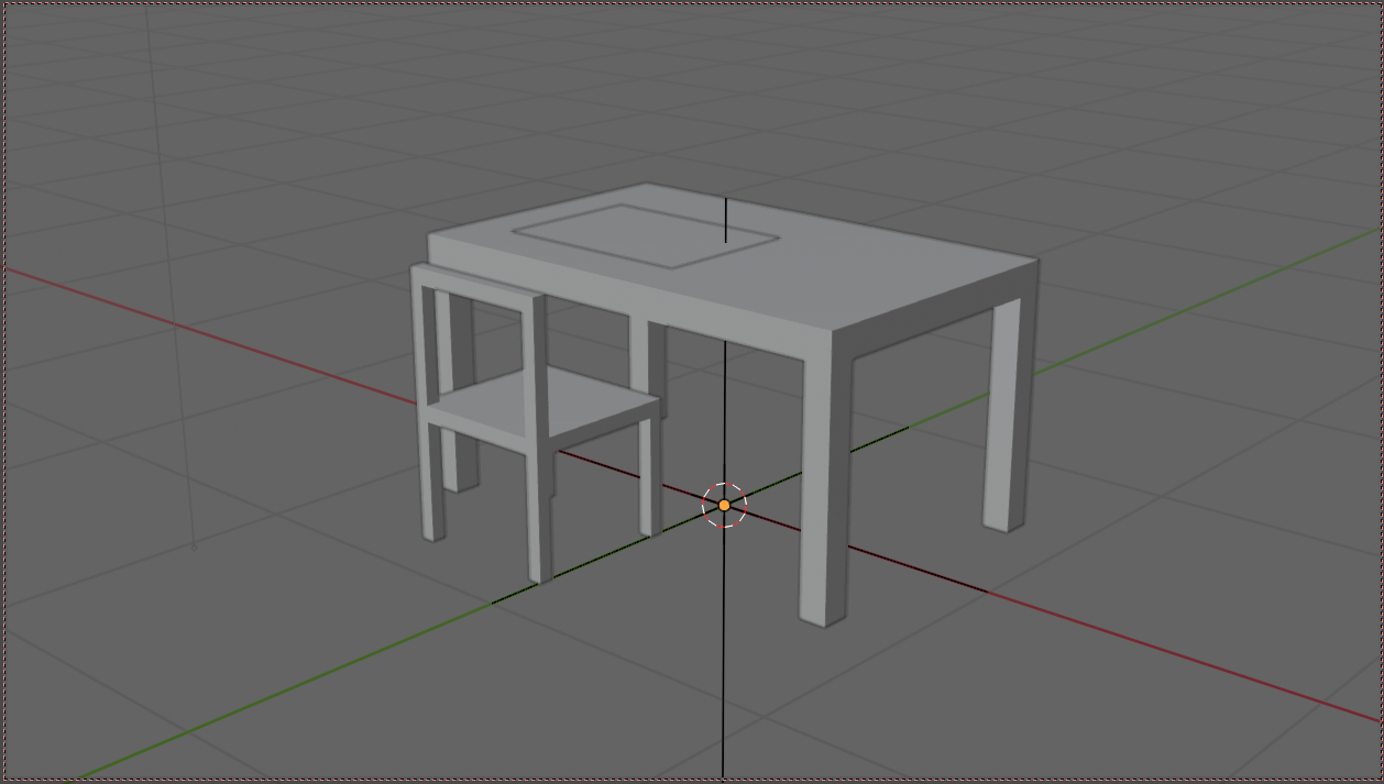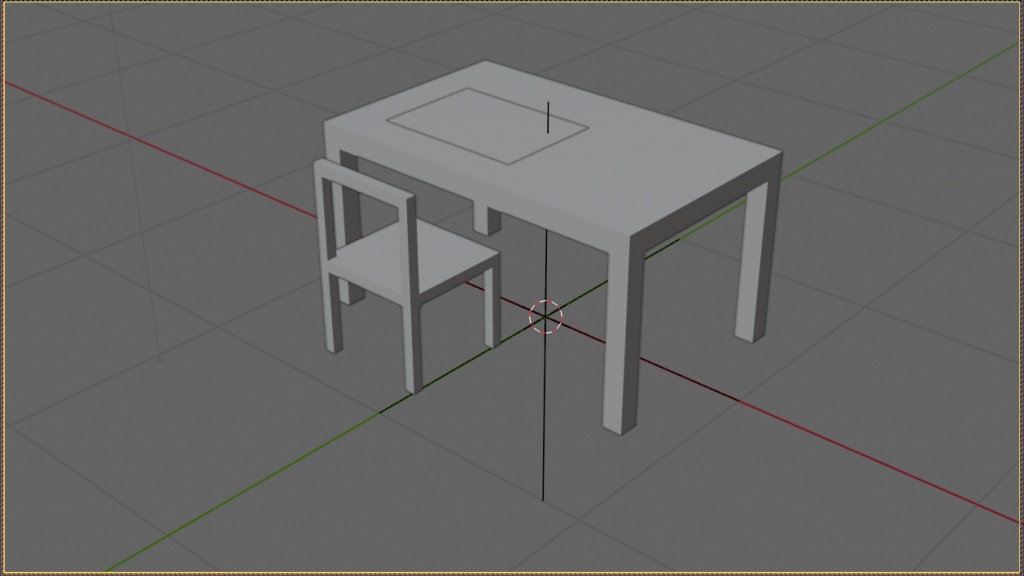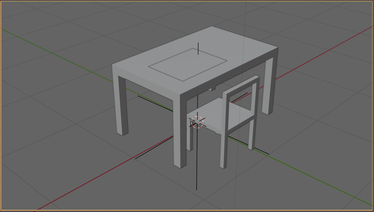 Dans cette Scène, l’animation consiste à faire tourner la caméra autour de la table. Dans l’écran ci-dessous, la caméra est visible au premier plan.