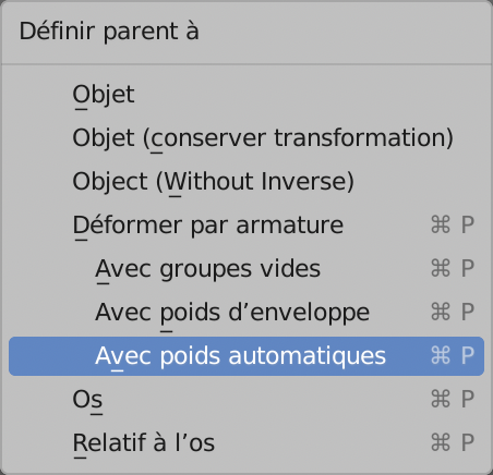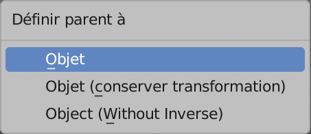Taper (Ctrl P) pour Définir Parent et choisir Objet, comme ci-contre. Des pointillés relient ces deux Objets.