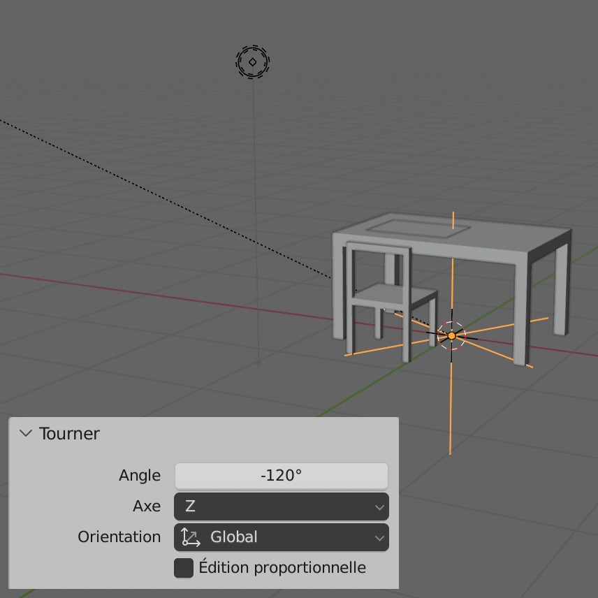 Cela ajoute à la rotation de la Caméra entrainée par l’Empty, un mouvement final de zoom sur la table, propre à la Caméra, indépendant de l’Empty.