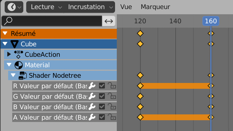 Ce paramètre peut donc être animé avec des images clés. Mettre la souris sur la case de ce paramètre et taper I pour insérer une nouvelle image clé.