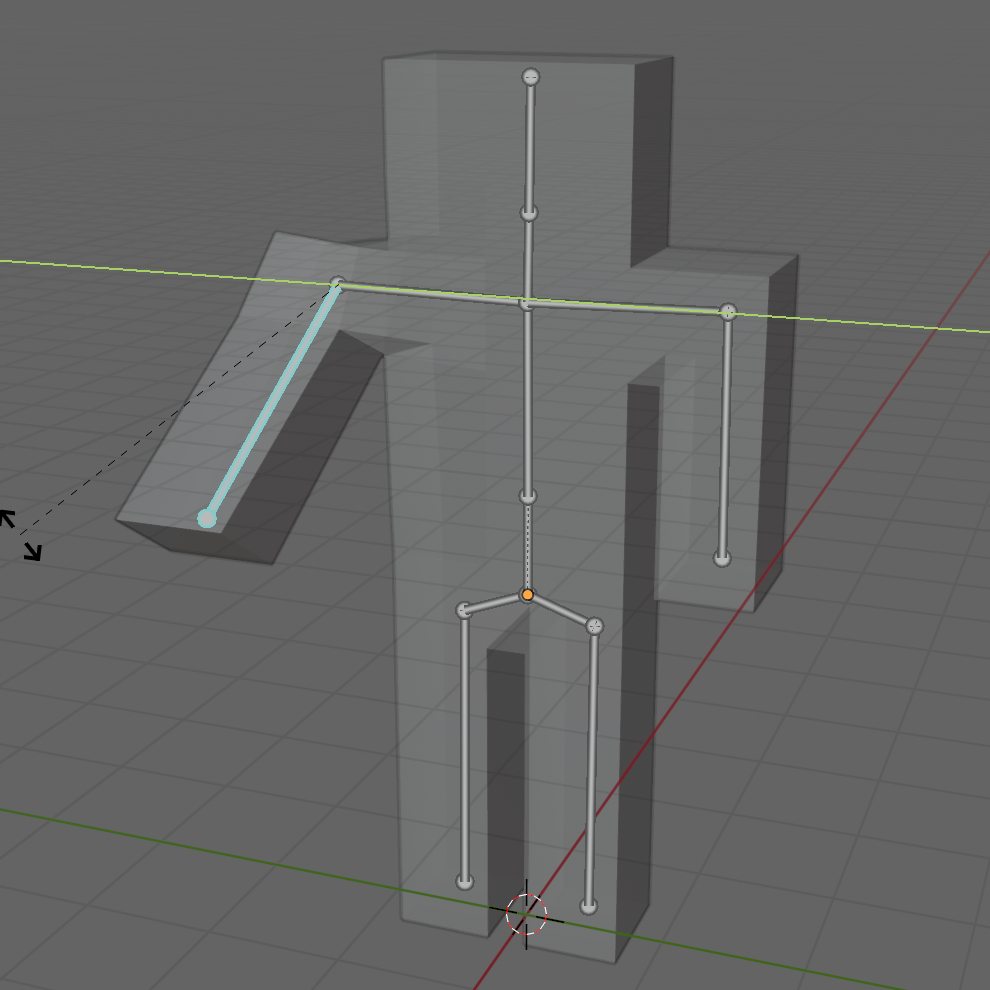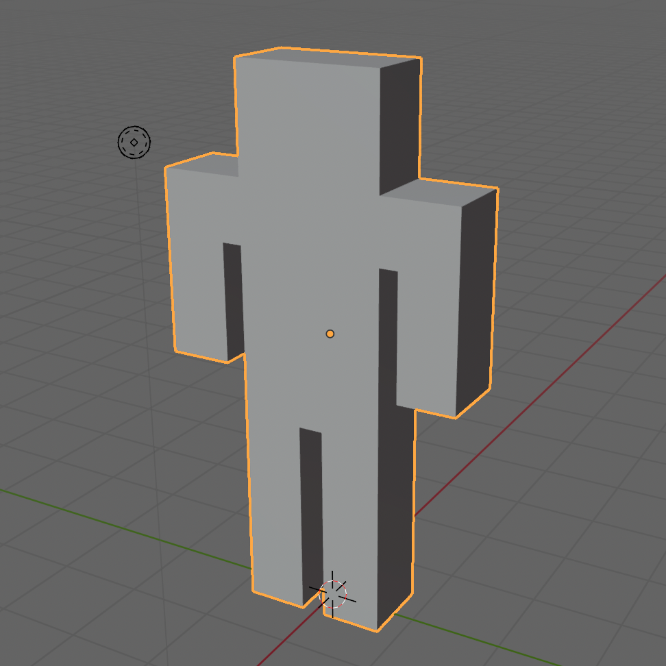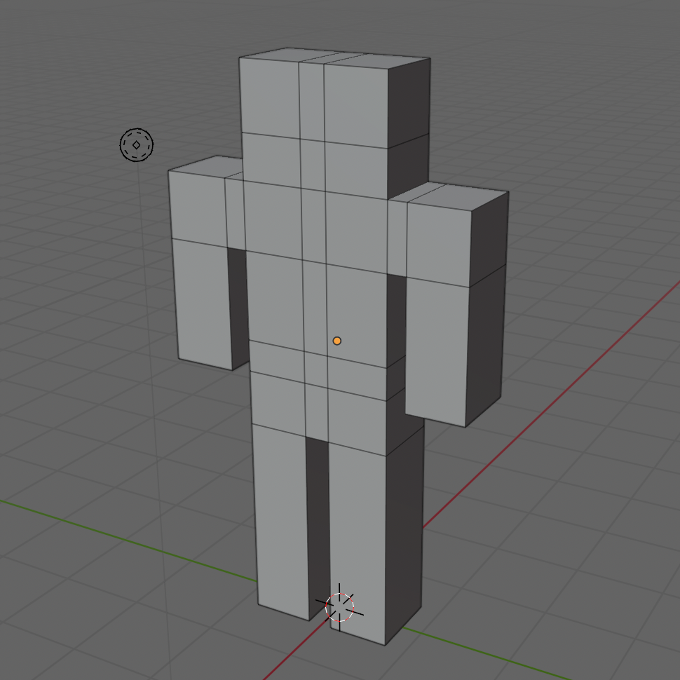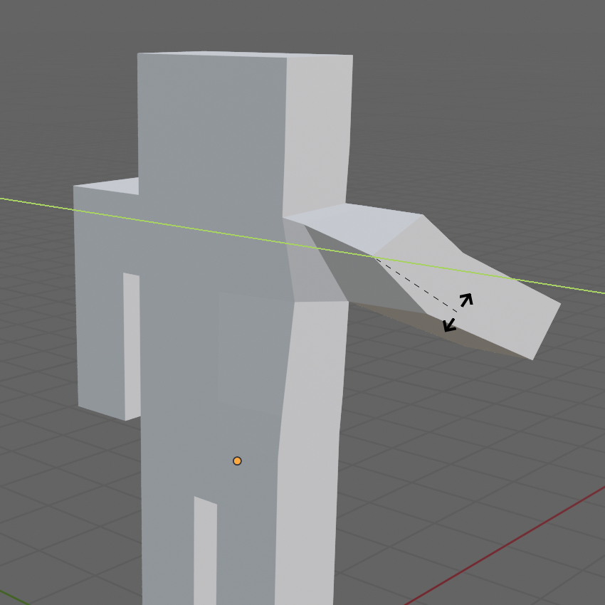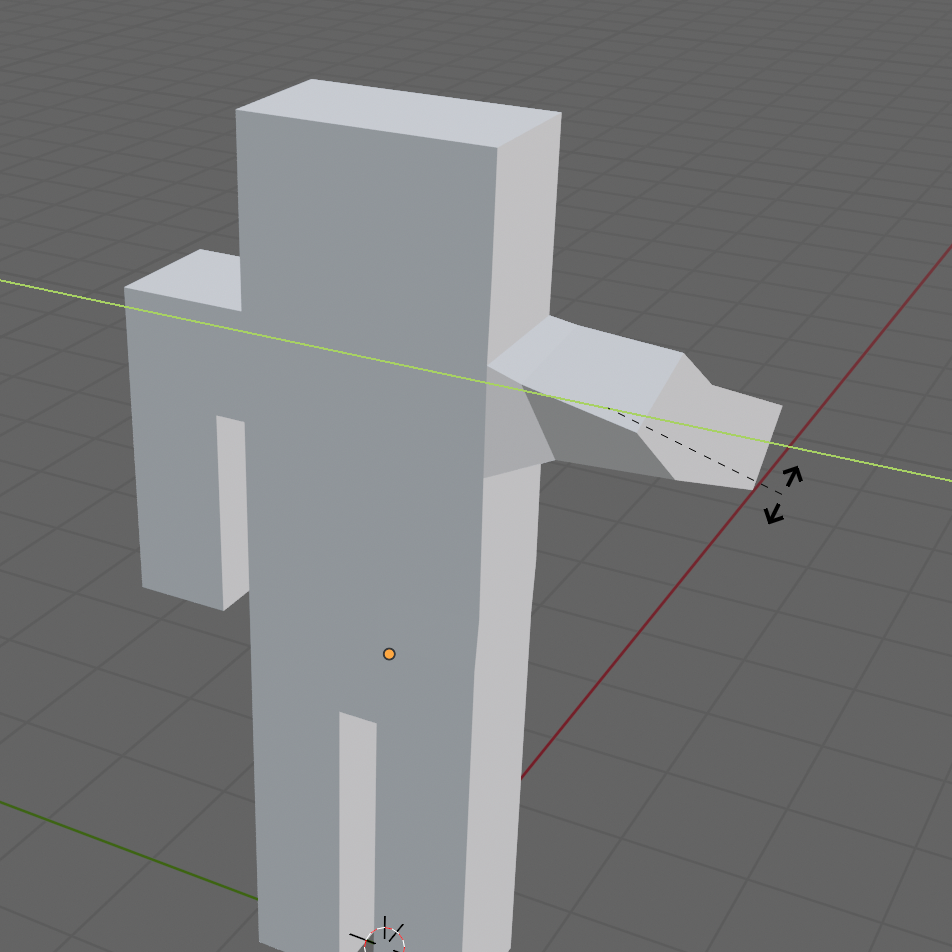 Sélectionner une face pour une épaule et l’extruder deux fois sur le côté, puis extruder la face inférieure vers le bas pour faire bras. Recommencer de l’autre côté.