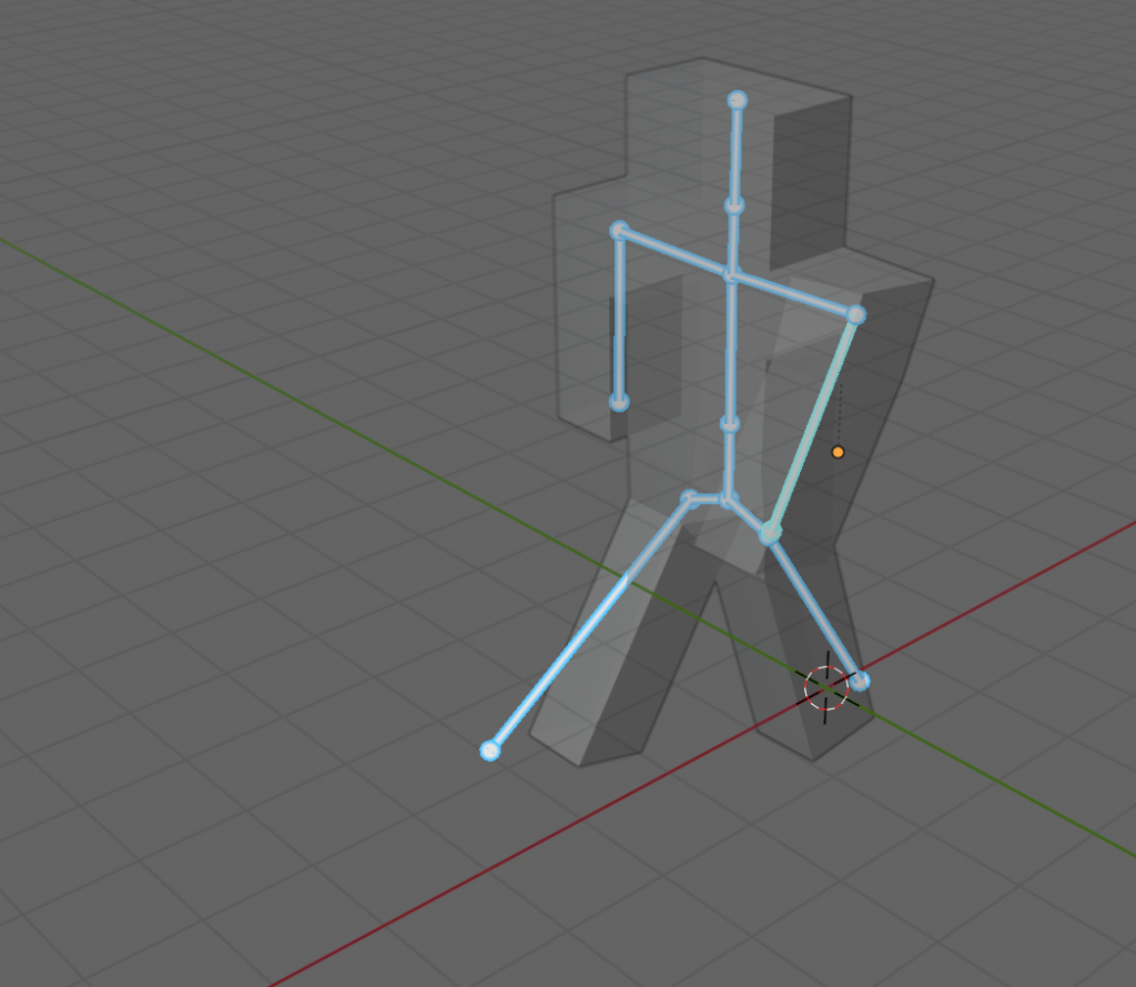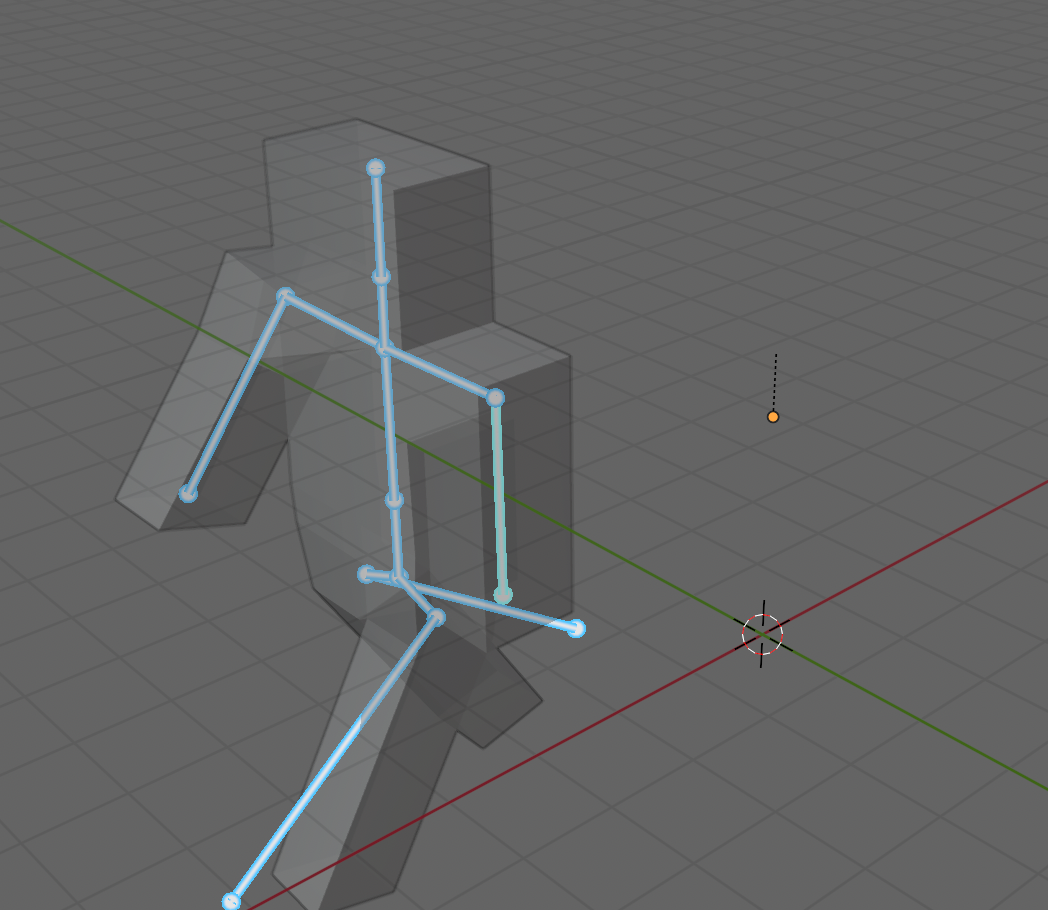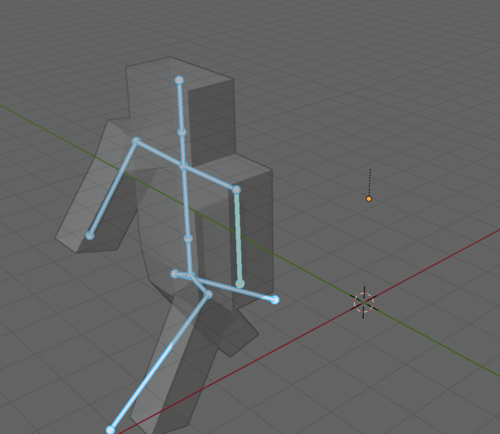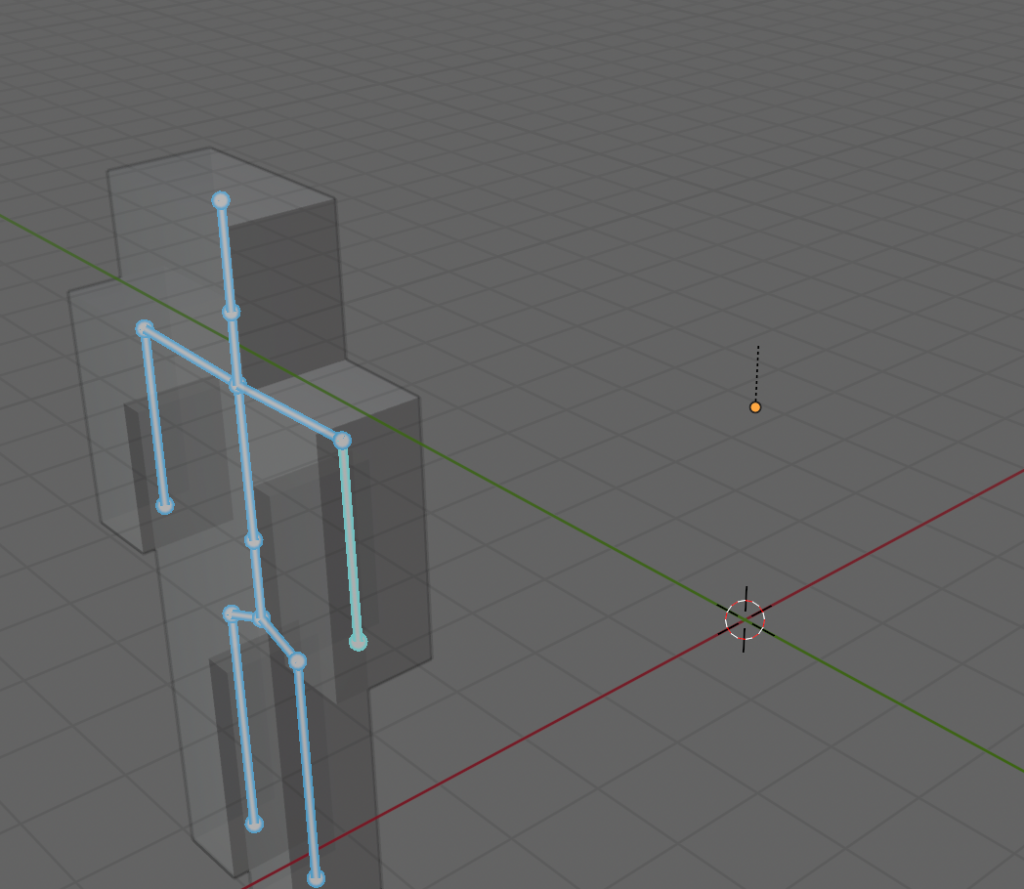Cet Os est le premier du squelette et il en sera le principal. C’est celui qui servira pour le bassin. Déplacer l’Os créé vers le haut, comme ci-dessous à droite.