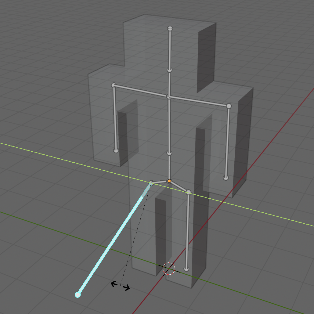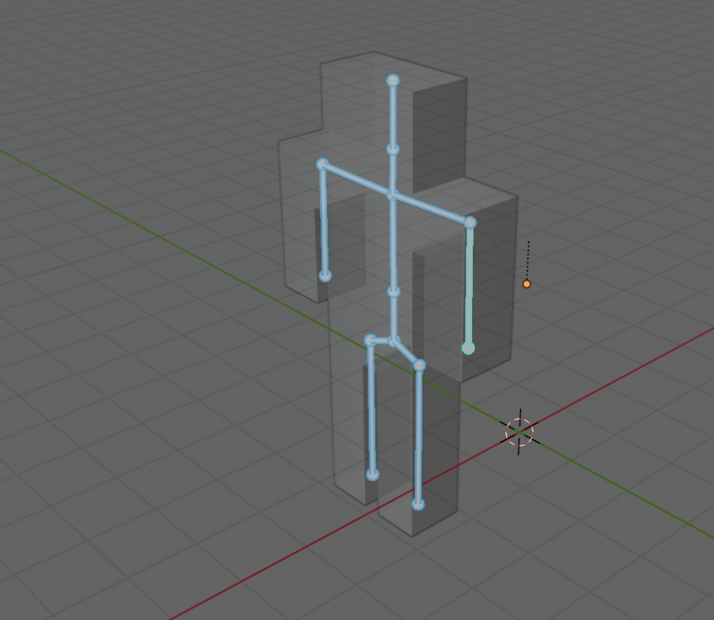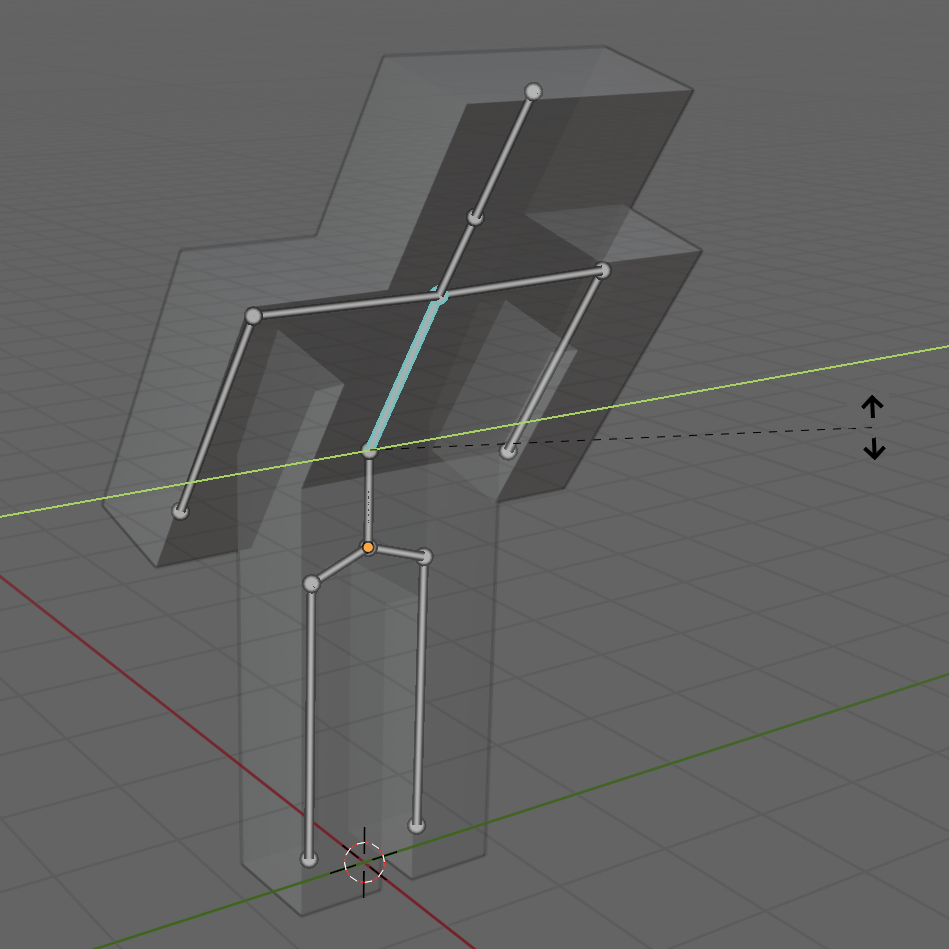 Cet Os est le premier du squelette et il en sera le principal. C’est celui qui servira pour le bassin. Déplacer l’Os créé vers le haut, comme ci-dessous à droite.
