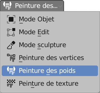 Les trois paramètres à régler pour peindre sont en haut de la Vue 3D :
