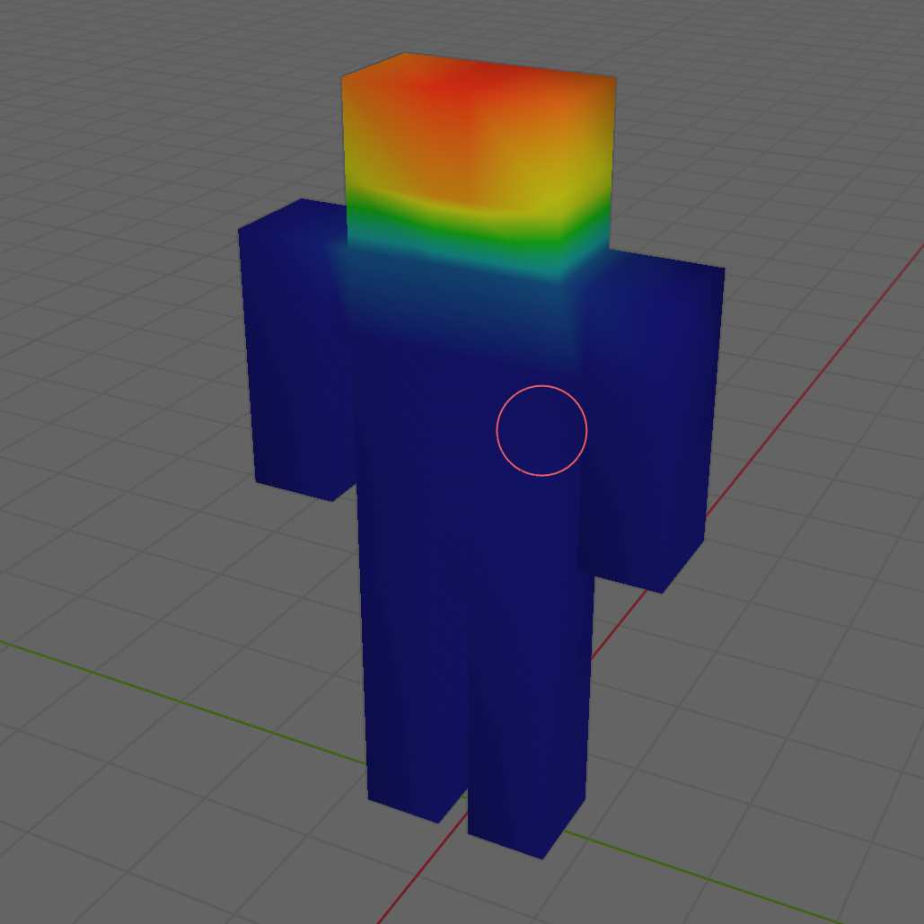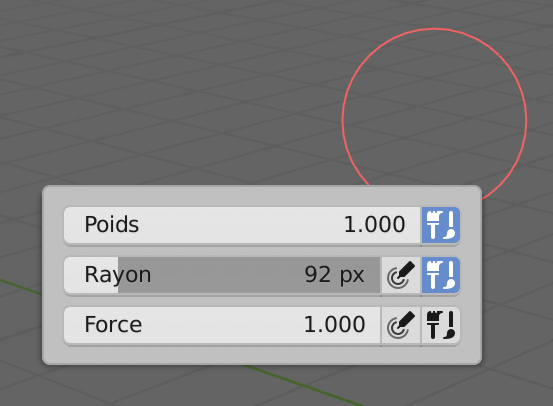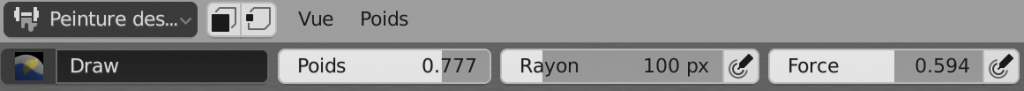 le Poids (de 0, bleu à 1, rouge), le Rayon en pixels et la Force (de 0 à 1).