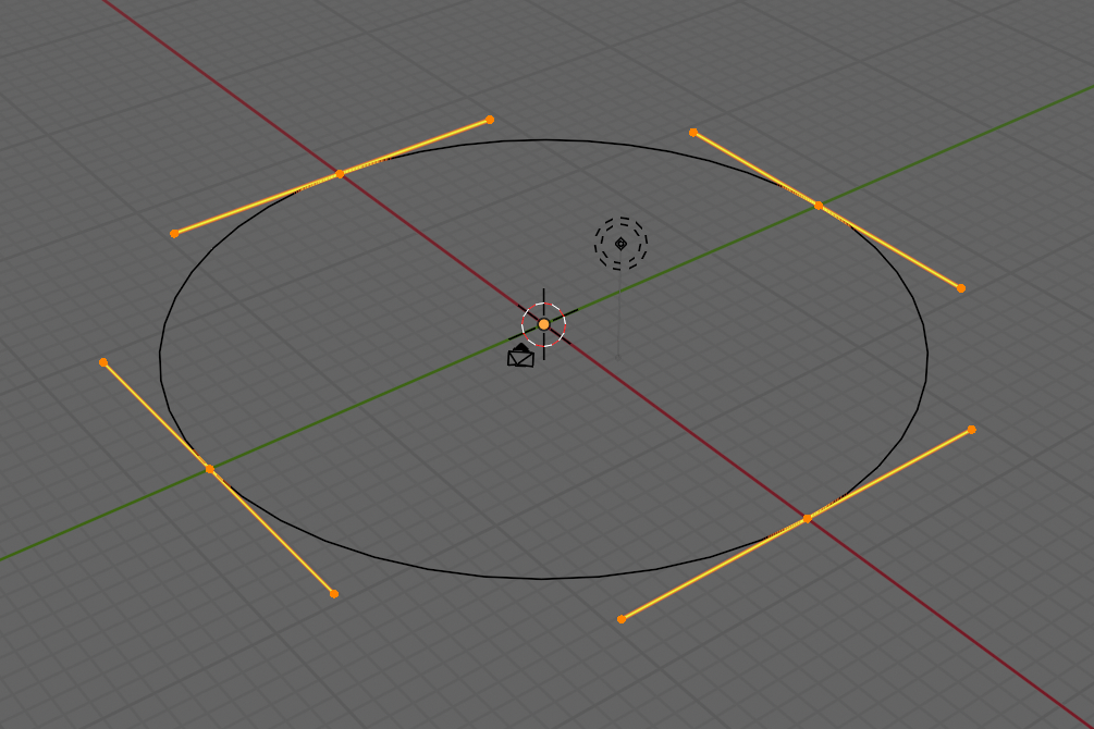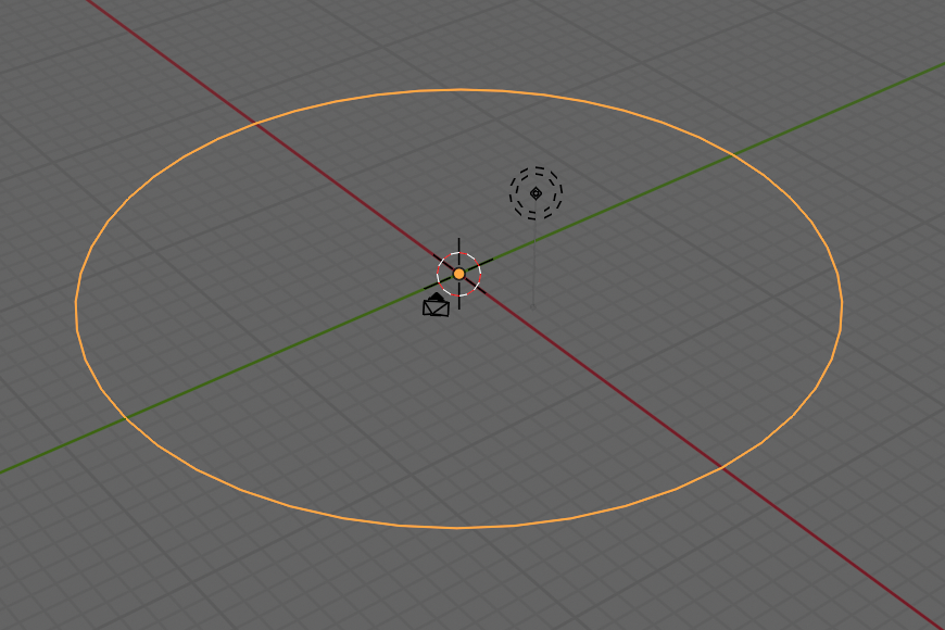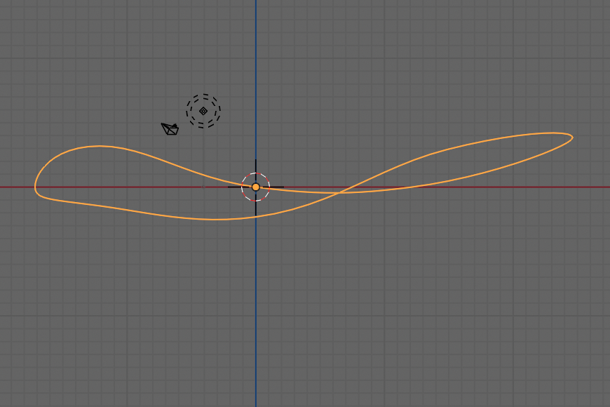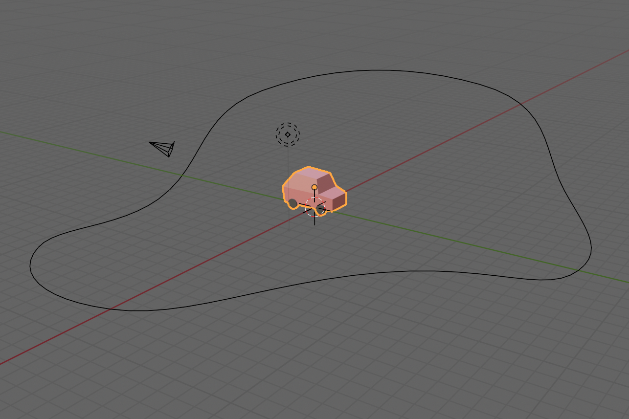 Au départ il est au centre de la Vue 3D. Il faut à présent le contraindre à se positionner le long de la Courbe.