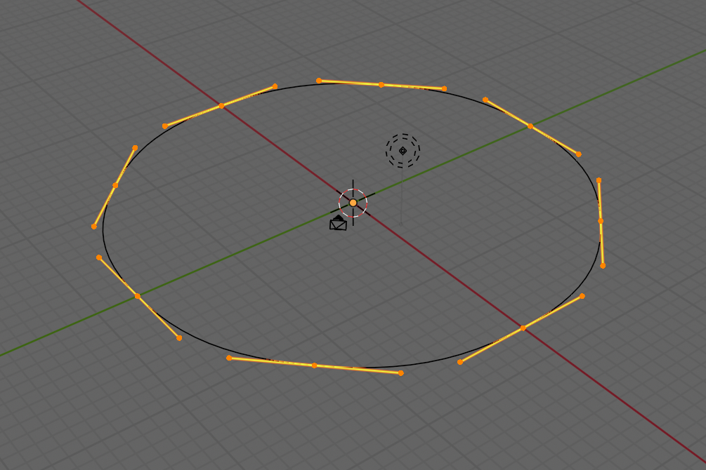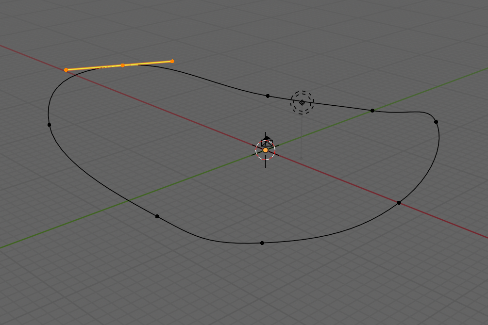 Ici, la courbe est fermée, mais on peut procéder de même avec une Courbe Bézier au départ, en ajoutant des points par extrusion et en modelant la courbe qui sera alors un chemin ouvert.