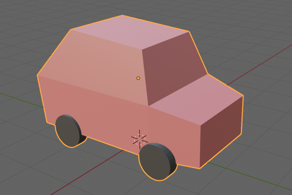 Ajouter ensuite 4 cylindres pour les roues, toujours en Mode Edit afin que la voiture soit un Objet Unique. Sinon, il serait très compliqué de tout déplacer ensemble. Ajouter un Shader spécifique et les assigner aux roues. Voilà votre véhicule.