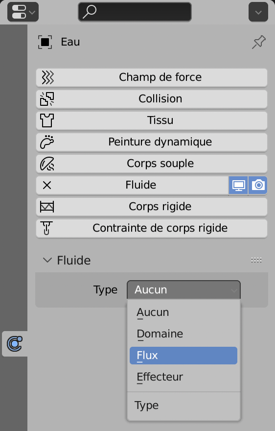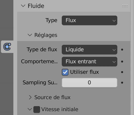 Désigner la Sphère comme Flux dans le Menu Type > Flux.