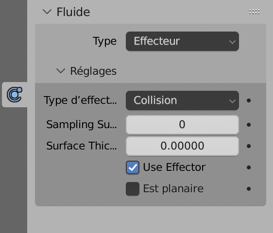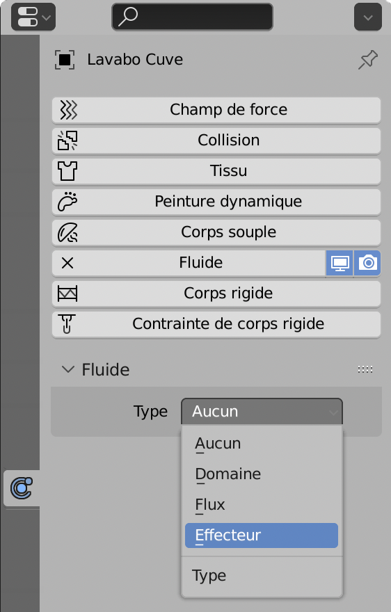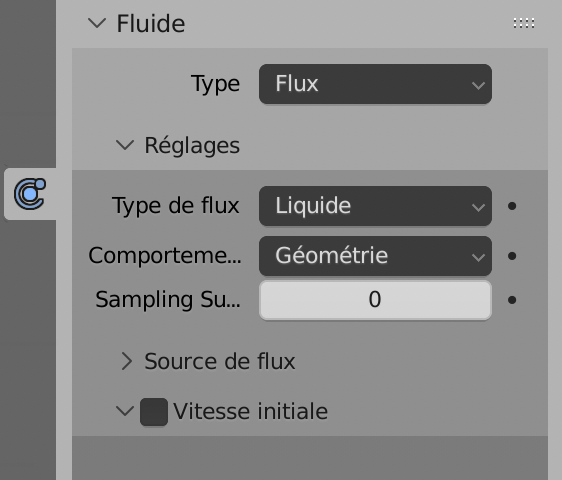 Il y a une troisième option, Flux sortant, qui permet de définir une zone d’écoulement du liquide. Dans notre cas, ce serait une bonde au fond du lavabo par exemple.