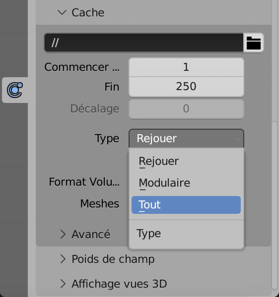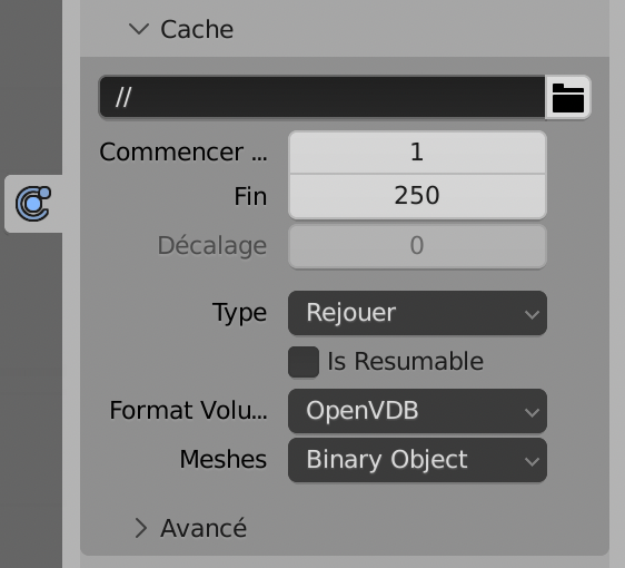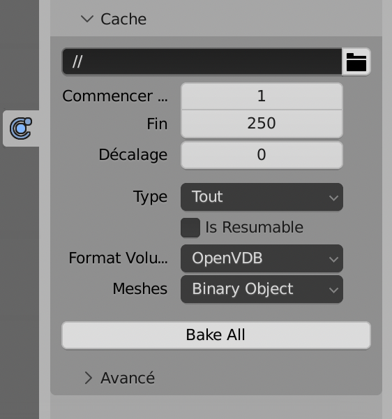 Dans les Propriétés du Domaine, dans la catégorie Cache tout en bas, cliquer sur le bouton Dossier pour choisir le dossier dans lequel le fichier Blender est enregistré Ce ne peut pas être un autre dossier.