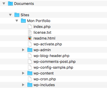 Dézippez le fichier téléchargé (il se nomme « wordpress ») et renommez-le de façon claire, par exemple « Mon Portfolio ». Ce sera le dossier racine local de votre site WordPress.