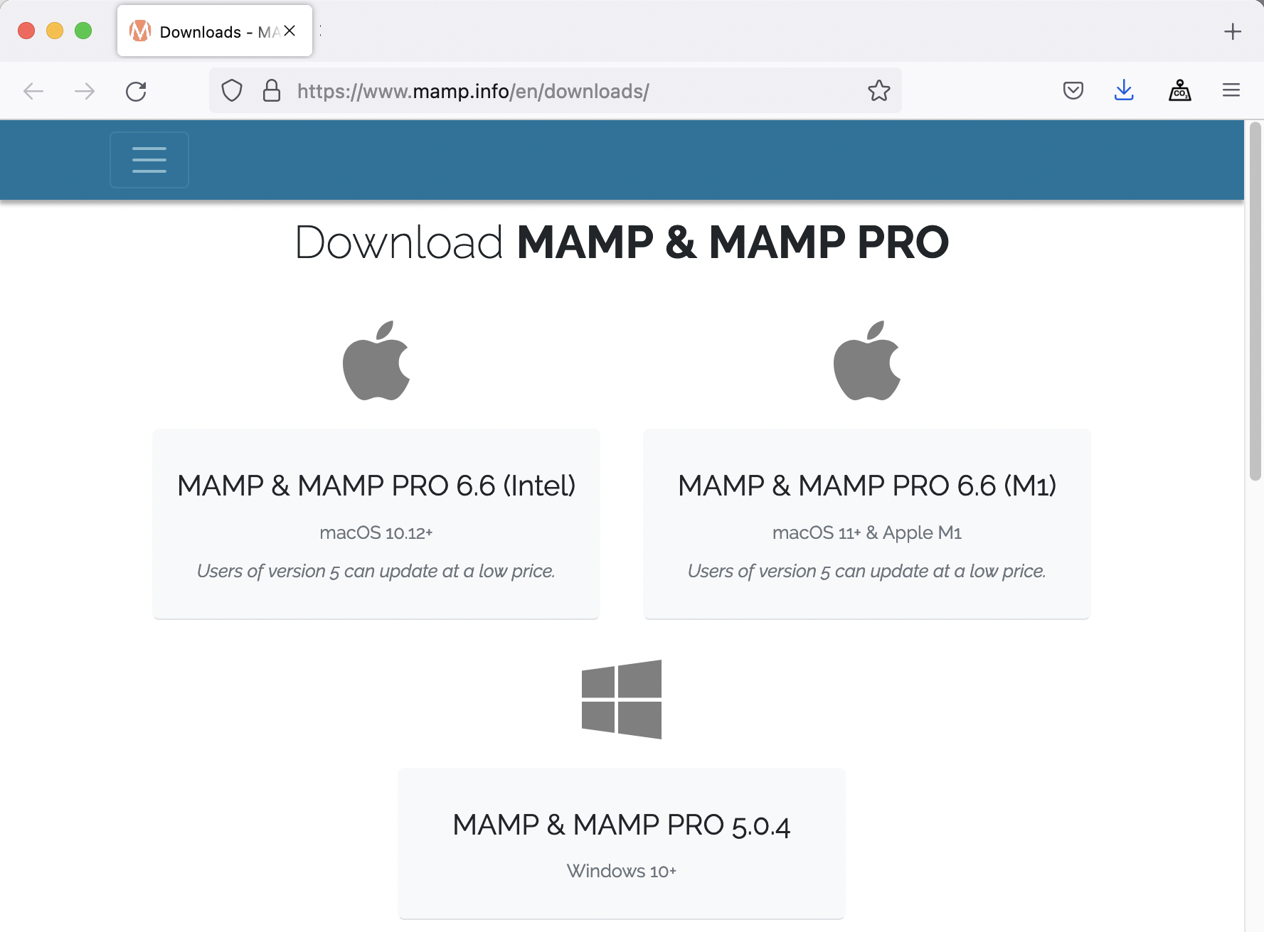 Sur Windows, lorsque l’installation de MAMP ne fonctionne pas, il est recommandé d’installer WAMP Server (c’est la même chose, mais pour Windows, le W de WAMP signifiant Windows).