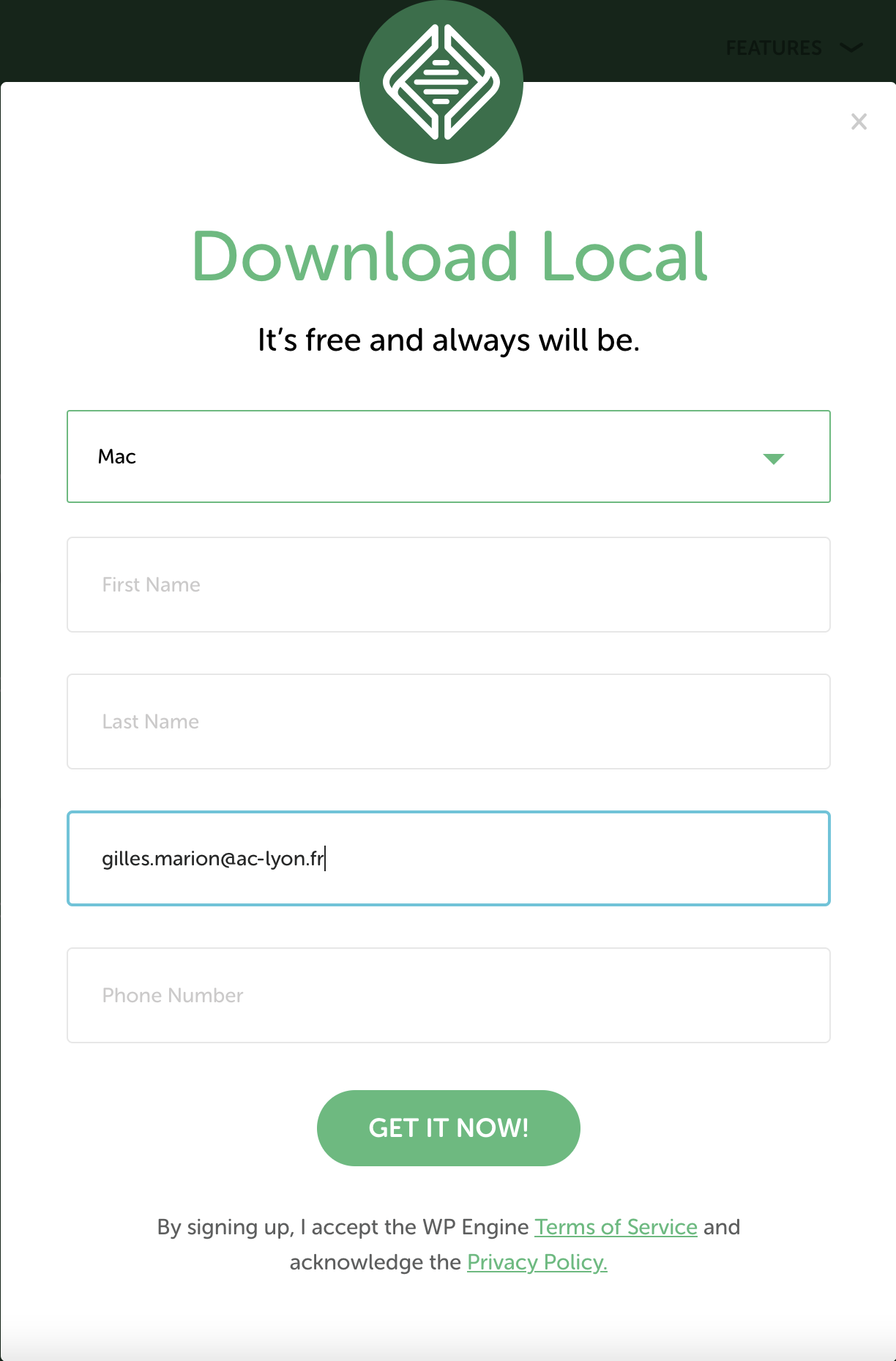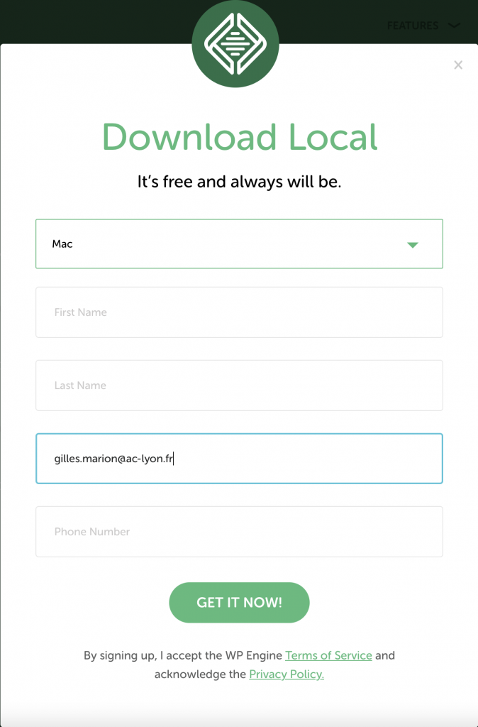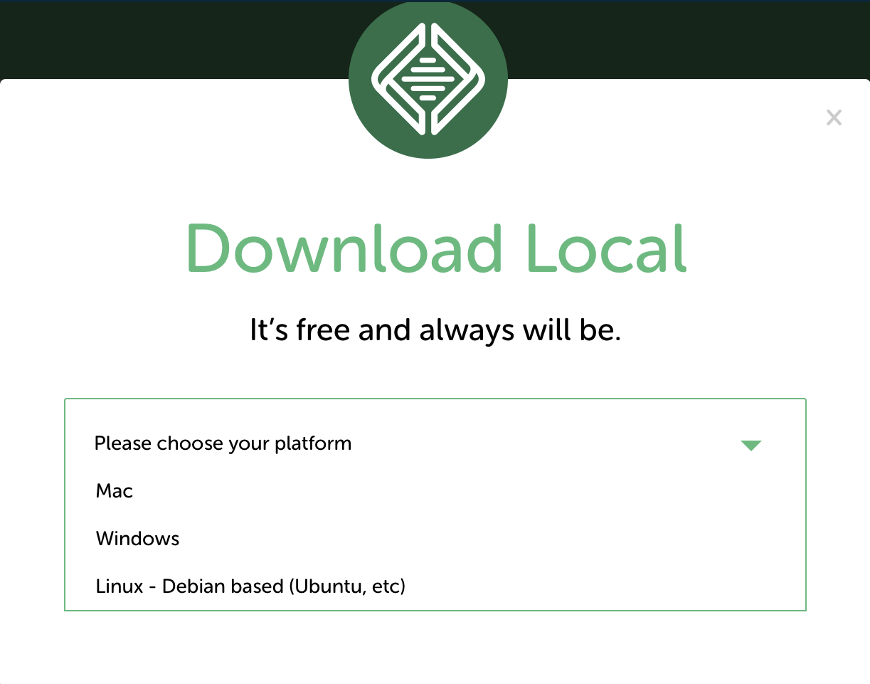 Cliquer sur le bouton Download en haut à droite. Il est inutile de créer un compte pour télécharger et utiliser Local.