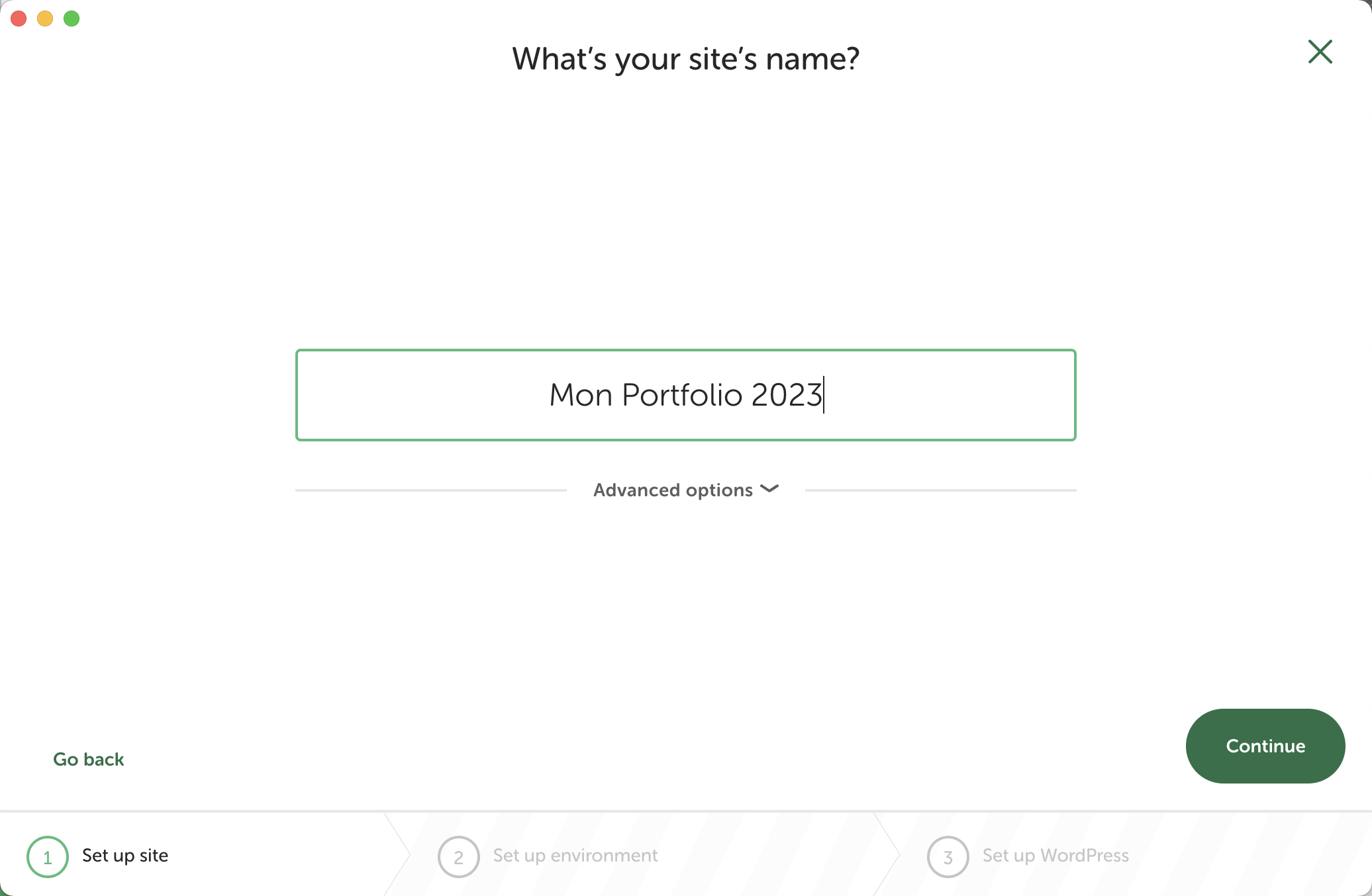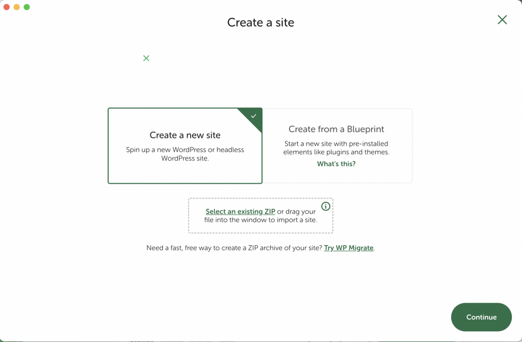 Cliquer sur Create a new Site, option sélectionnée par défaut.