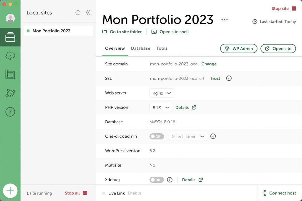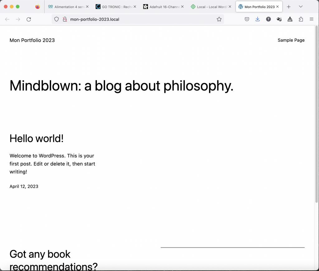 Revenir à l’écran d’accueil de Local et cliquer sur le bouton Open Site, en haut à droite. Cela ouvrira votre site tel qu’il apparaitra sur le web pour ceux qui viendront le consulter, comme ci-dessous.