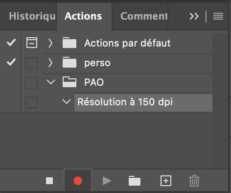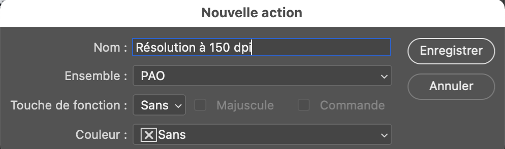 Pour changer la résolution d’une image, le plus rapide est de créer une action. Cette action pourra ainsi être utilisée pour une image isolée ou appliquée à un processus d’automatisation (traitement par lot ou processeur d’image).