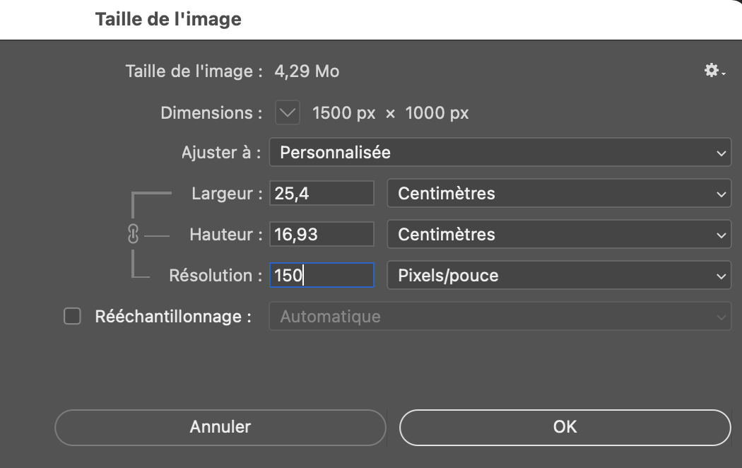– Décocher la case rééchantillonnage (très important),