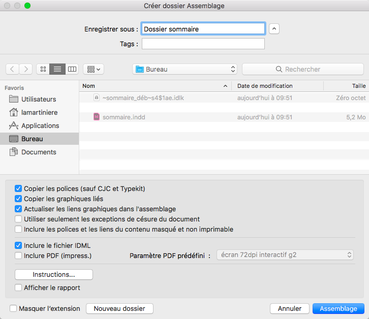 – il permet de rassembler tous les médias et typos nécessaires au fichier, ainsi qu’une copie du fichier InDesign, sans rien oublier mais en ne rassemblant que les images utilisées. C’est donc un outil de tri bien pratique. Il ne reste ensuite plus qu’à jeter tout le reste (avec précaution tout de même),